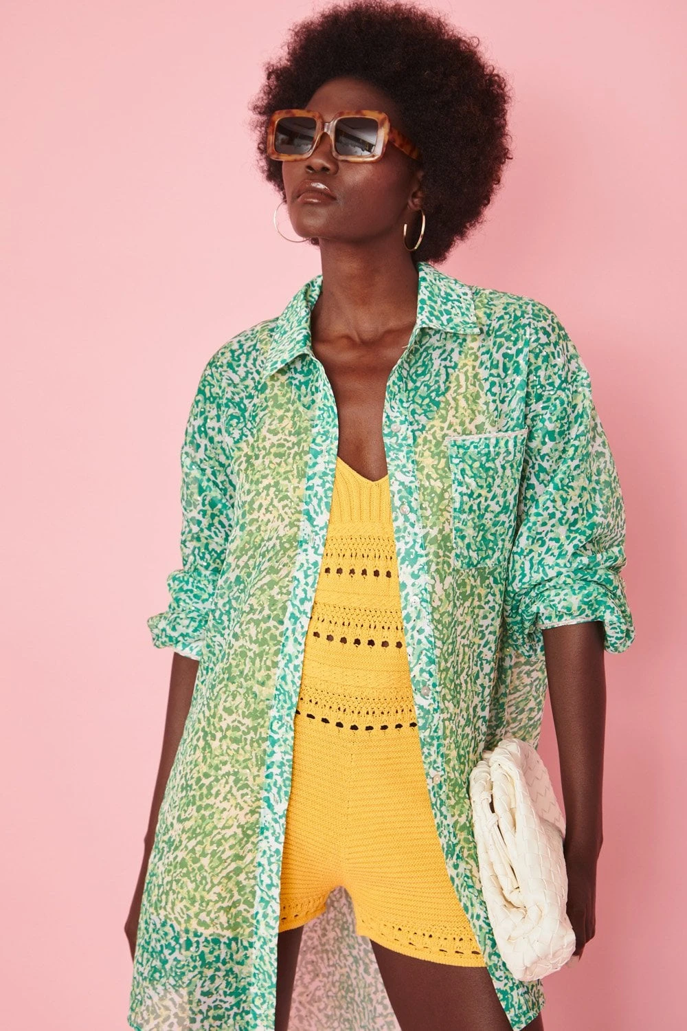 This oversized semi-sheer shirt is a must-have. Style open or over a cute cami top.