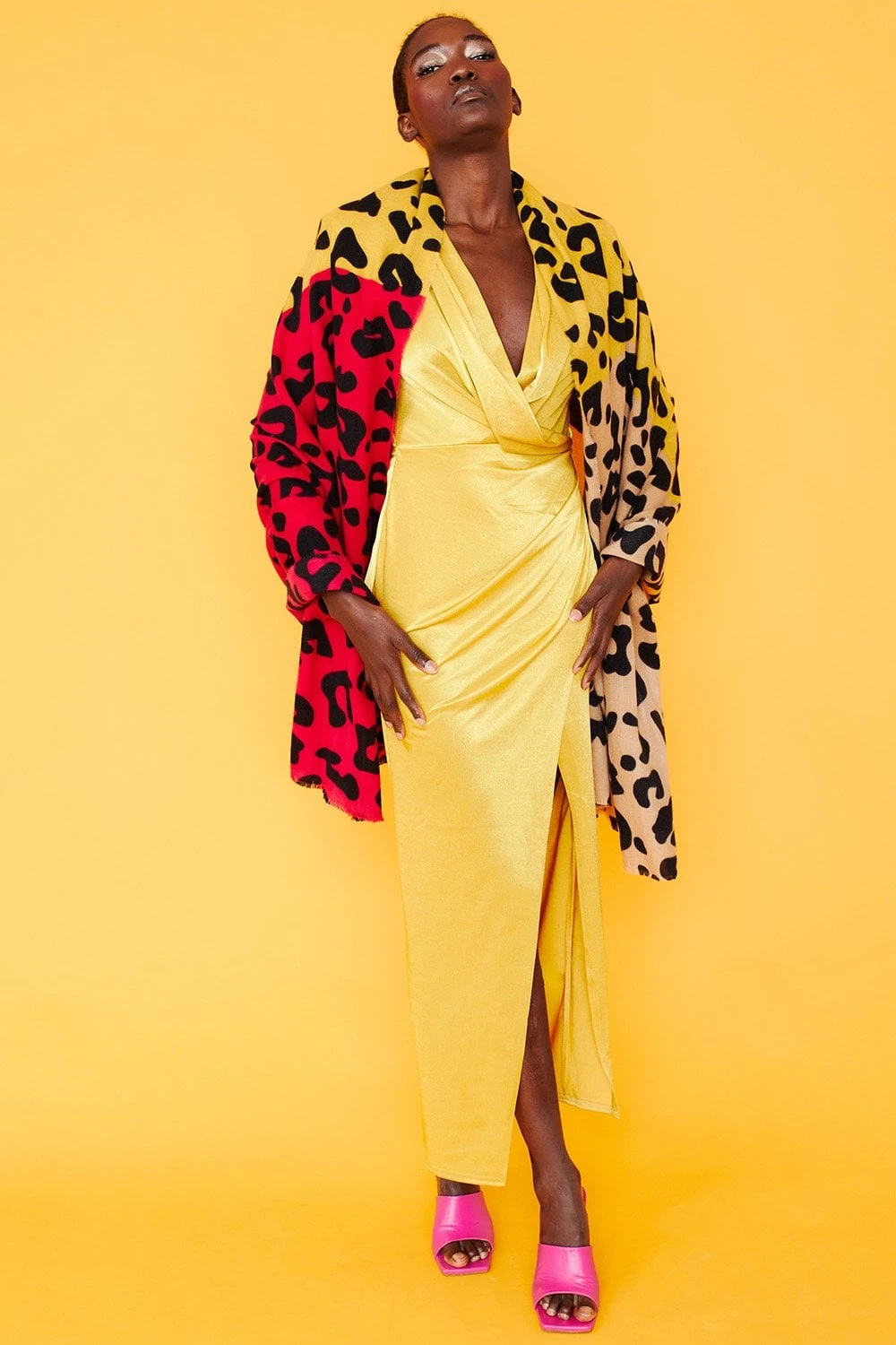 Cashmere & Silk Blend Leopard Print Wrap With Bold Colour Blocking.