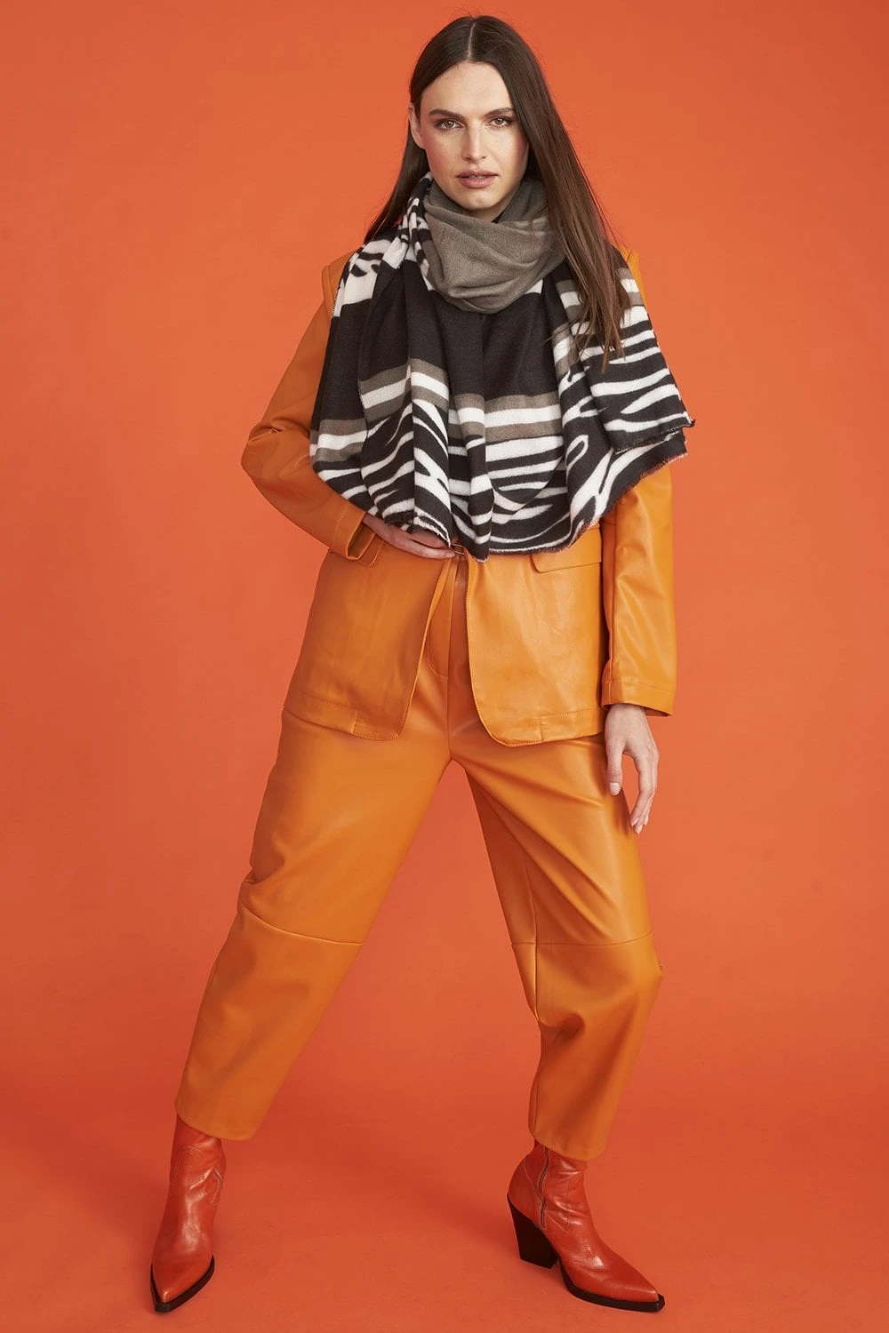 Our Zebra print scarf is perfect for creating dramatic layers and keeping warm. Made from the finest of cashmere blend this scarf is sure to keep you warm without adding additional weight to your look.
