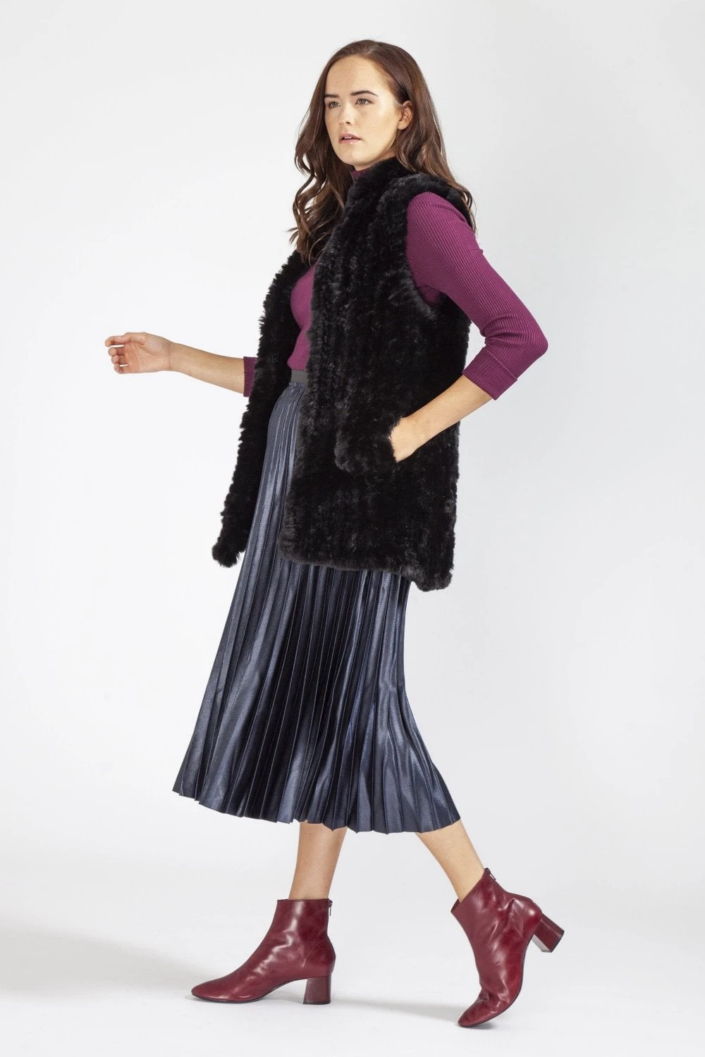 JAYLEY Black Hand Knitted Faux Fur Gilet