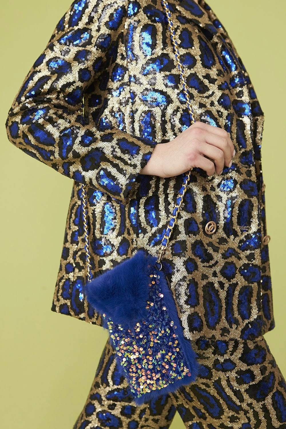 JAYLEY Blue Sequin And Faux Fur Phone Holder