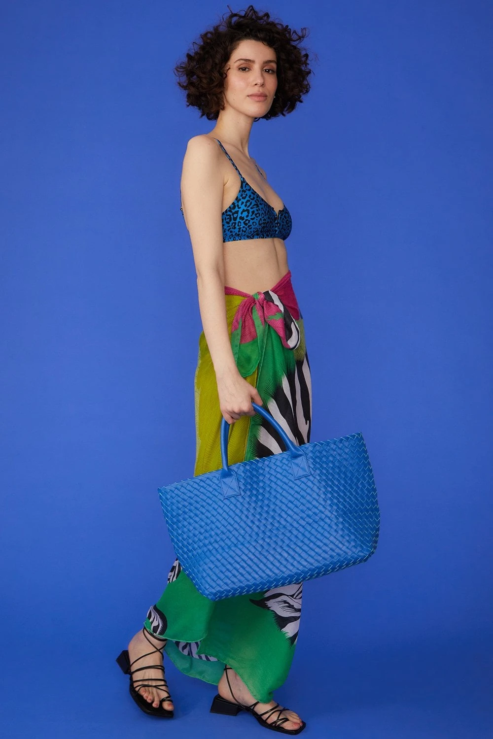 Perfect for those summer day trips, classic tote bag woven from gorgeous metallic faux leather.