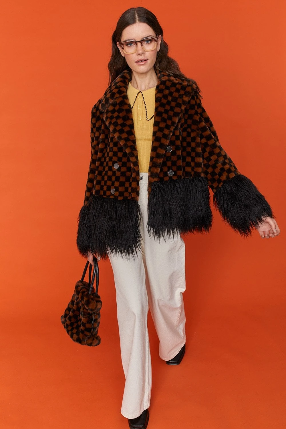 We are obsessed with these stunning checkered faux fur bags, featuring adjustable closing features, pom pom finishing tassels, and faux leather handles. We know this bag will soon become one of your everyday essentials.