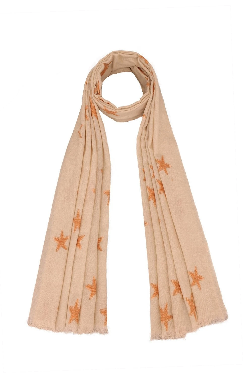 A must-have transitional piece this Spring and Summer!. Our cashmere blend scarf with a star design will become a wardrobe staple!