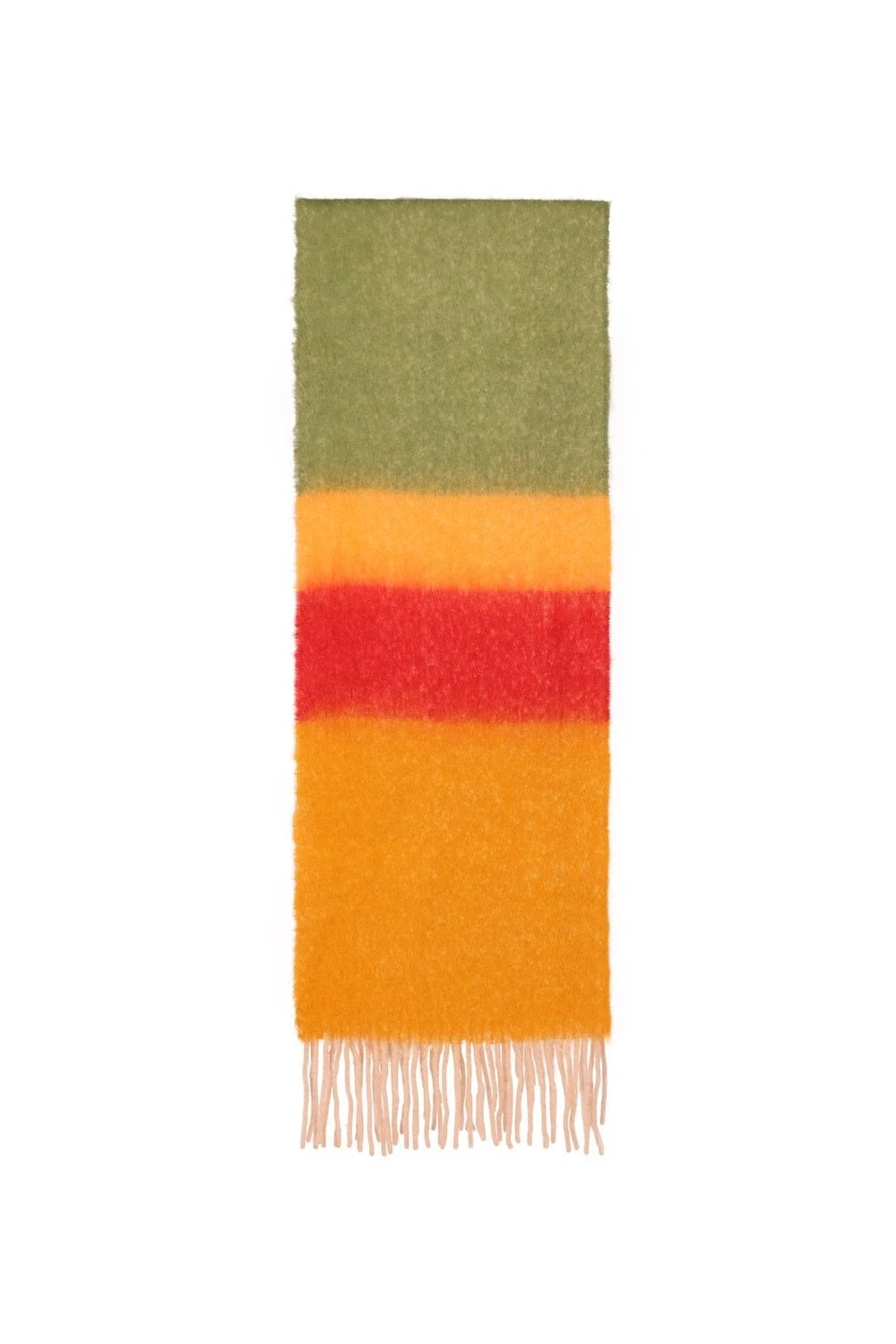 This multi-coloured orange and blue toned cashmere and wool blend oversized scarf is a must have for this season. The contrasting panels really make it stand out from the crowd.