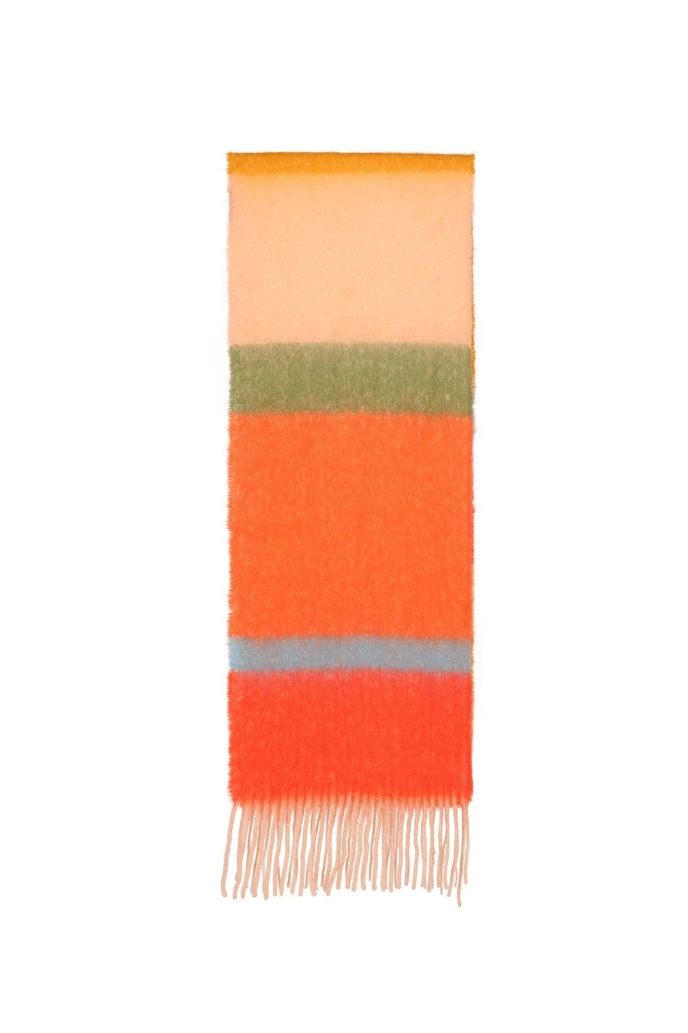 This multi-coloured orange and blue toned cashmere and wool blend oversized scarf is a must have for this season. The contrasting panels really make it stand out from the crowd.