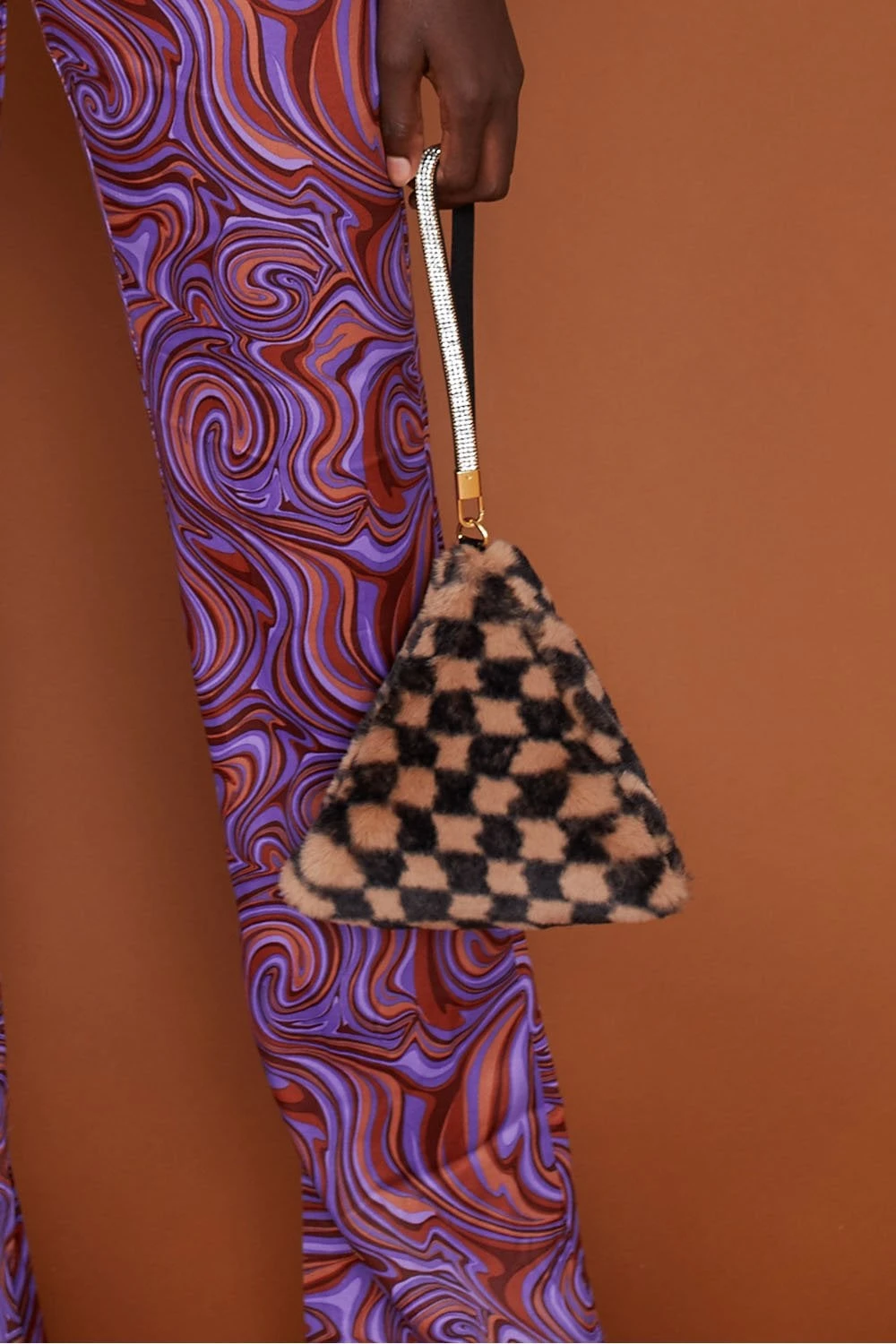 We know you can’t get enough of our pyramid bags. Available in literally every colour you can imagine and now in our new Check collection. Featuring a diamante wrist strap, zip fastening and full lining.