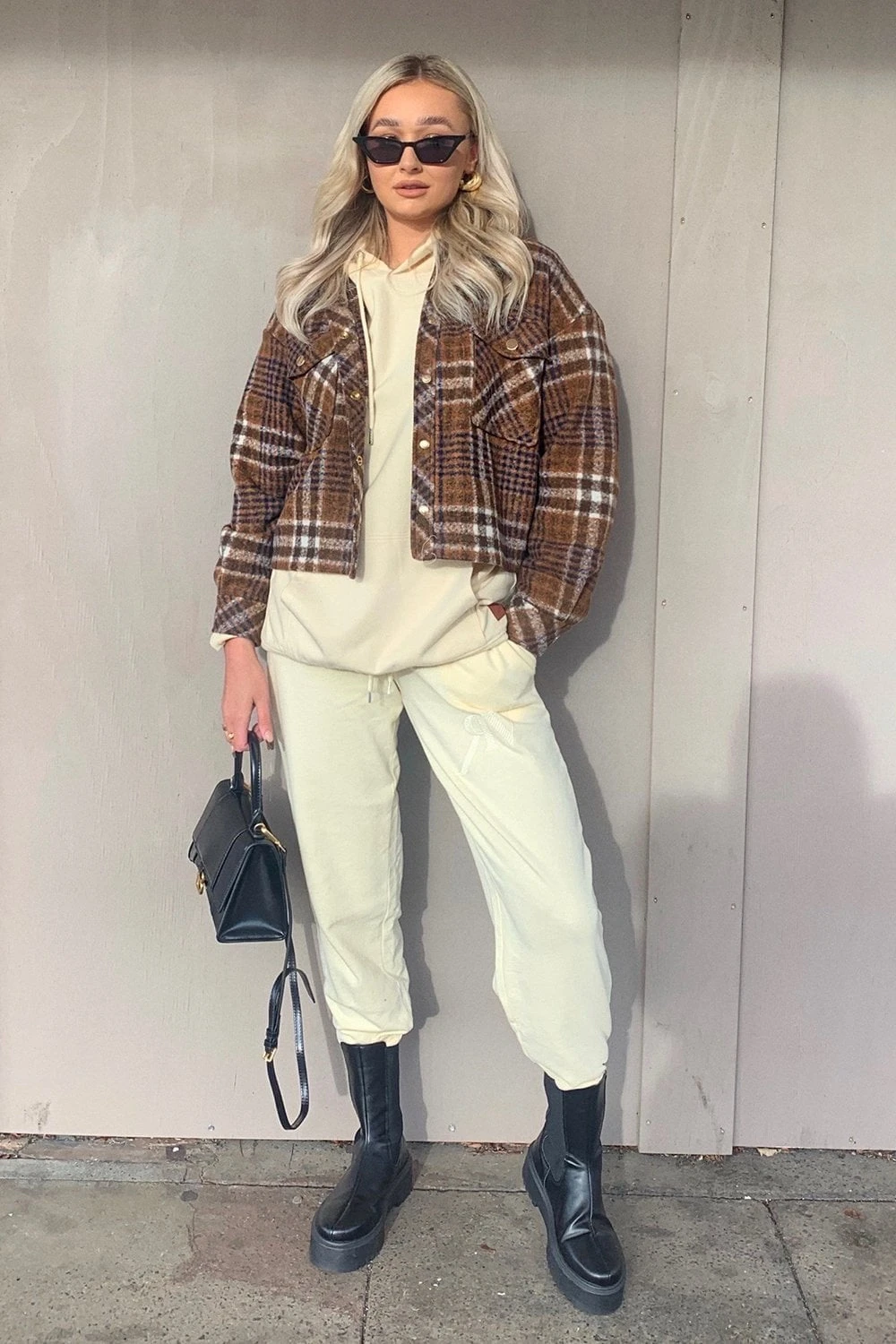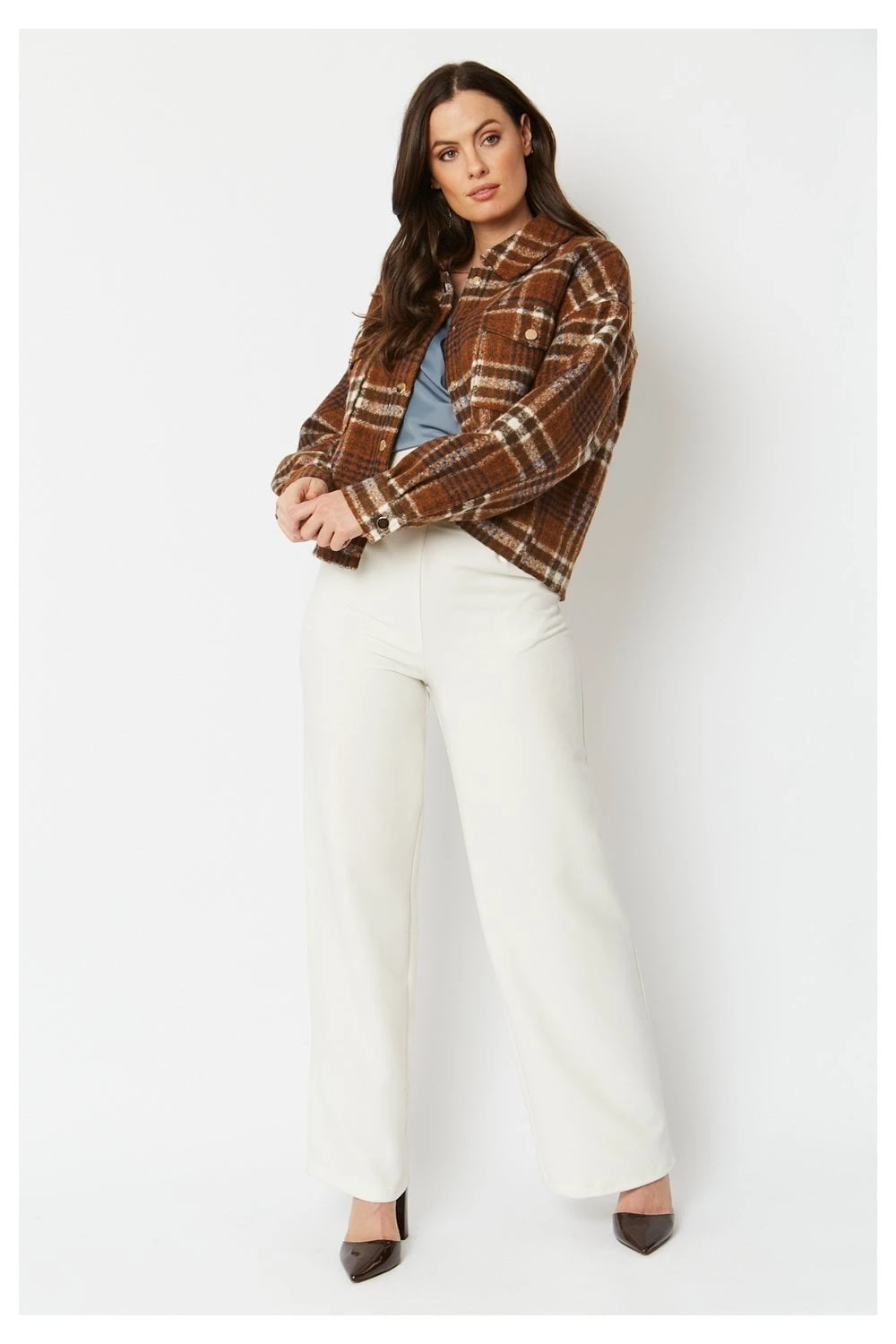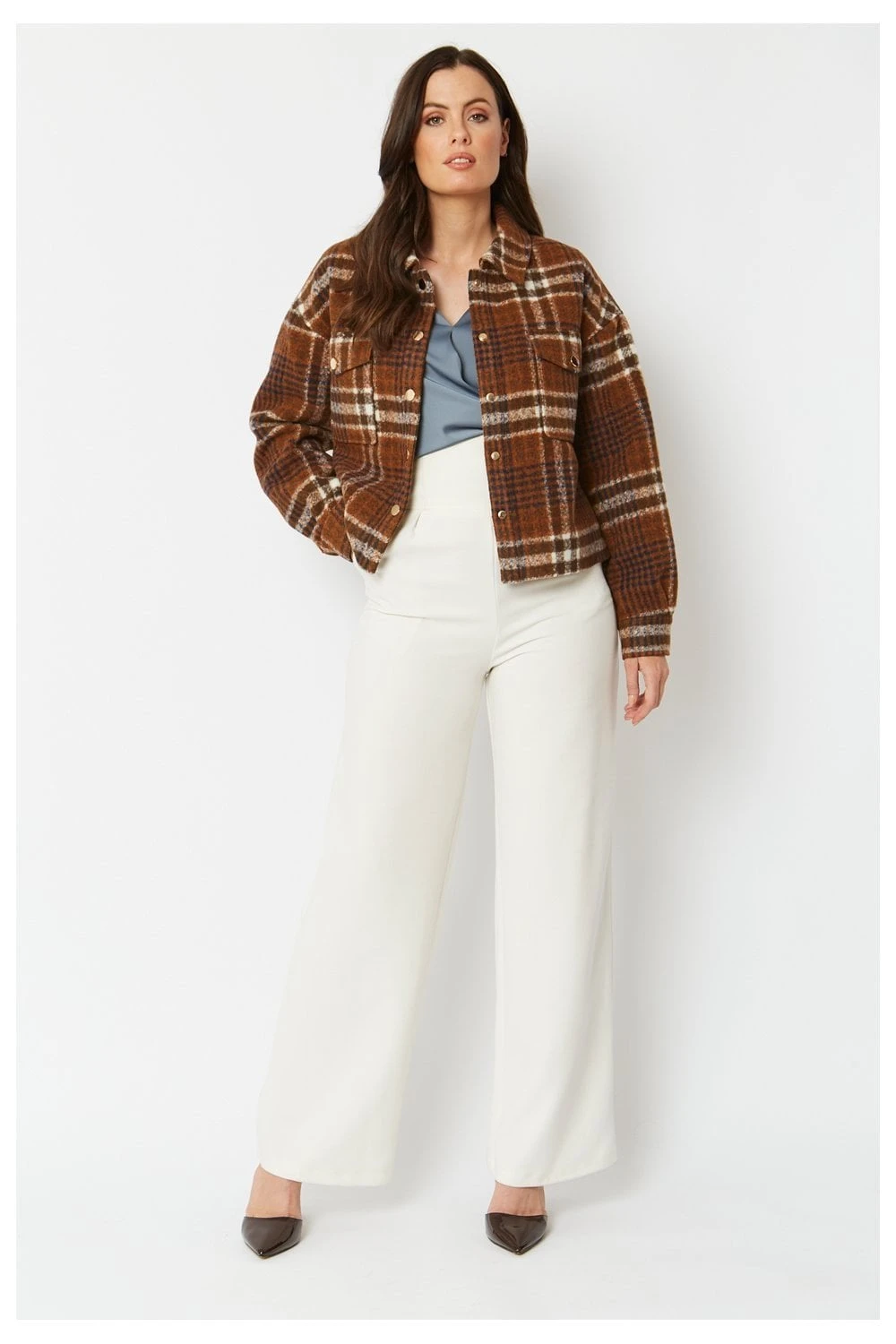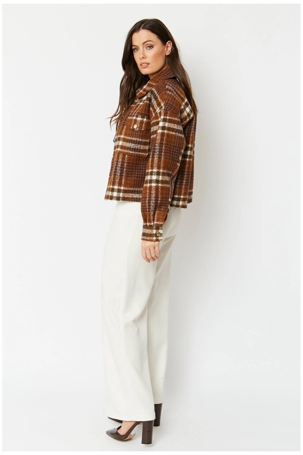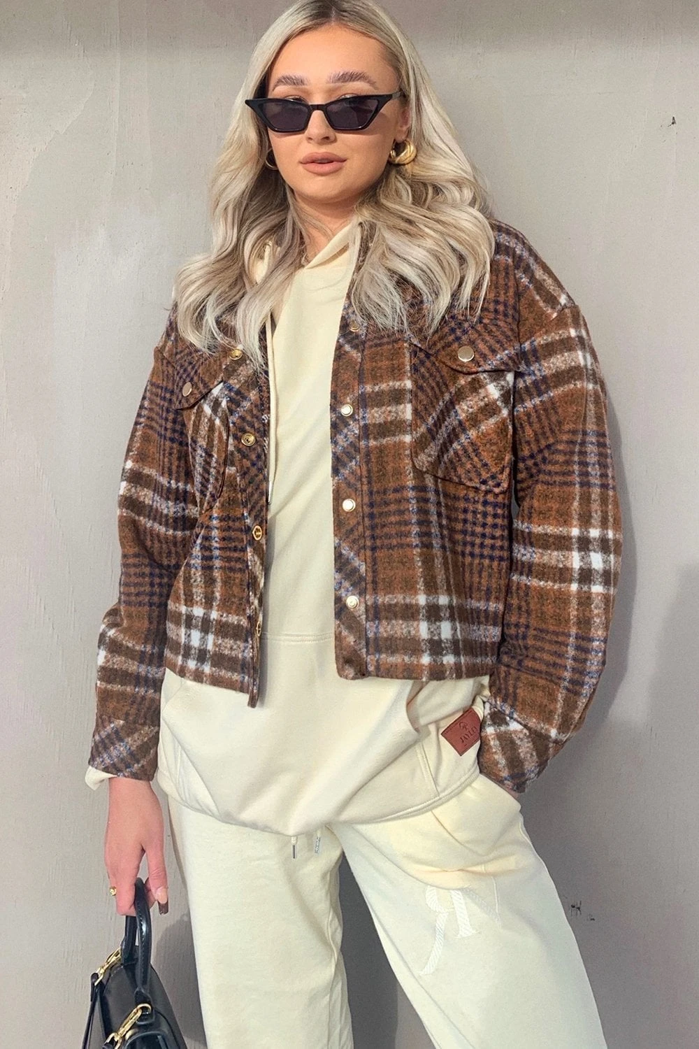 An absolutely stunning cropped cashmere-blend jacket with an elegant check print. A perfect piece to throw on and finish off any outfit.