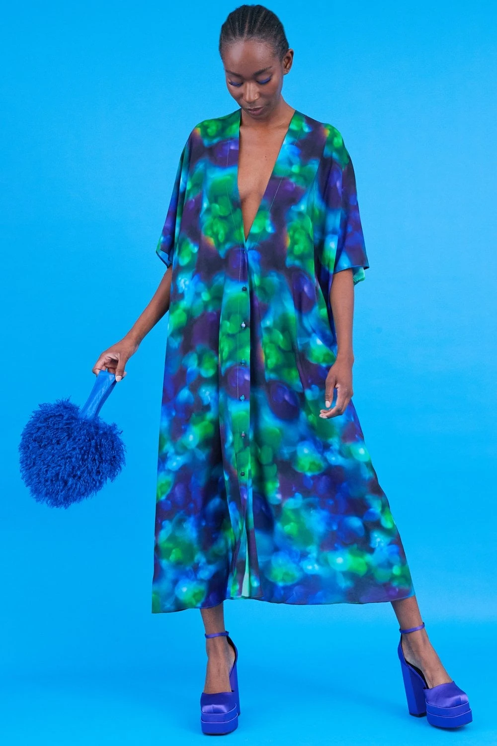 Keep cool in our oversized kimono featuring a gorgeous blue and green design, perfect for all year round.