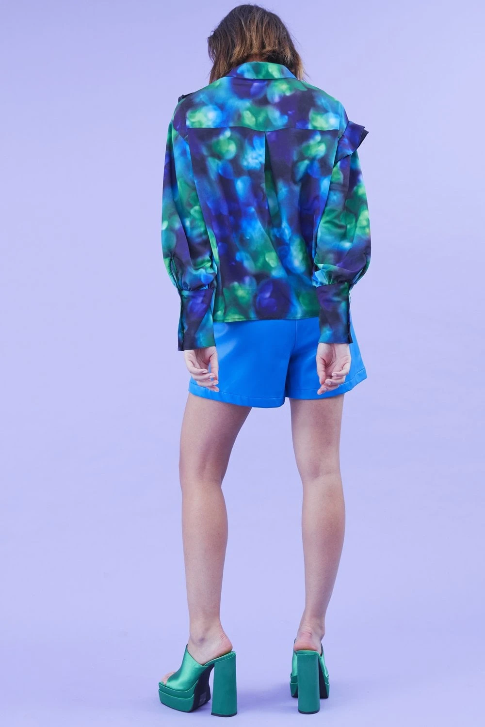 Keep cool in our sweet shirt featuring a gorgeous blue and green design, perfect for all year round. Classic collar and button up front and a dip hem.