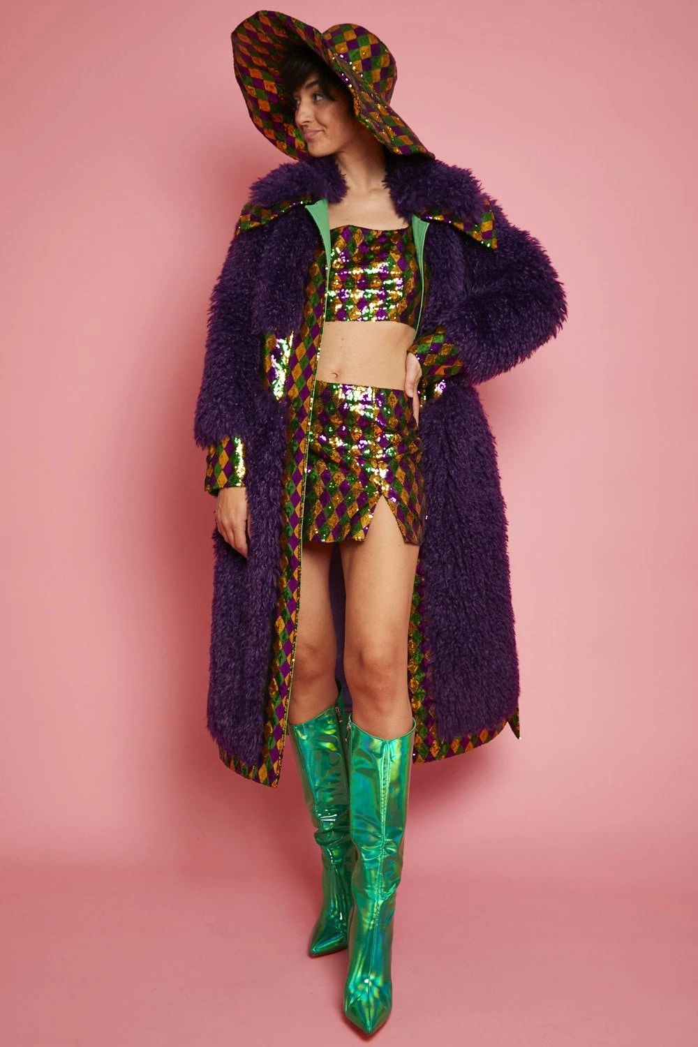 JAYLEY Diamond Design Sequin Flapper Hat