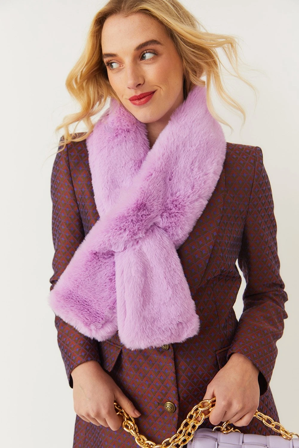 We LOVE this faux fur scarf. It’s such a snuggly addition to your Autumn / Winter look. The scarf features a small slit allowing you to fasten snuggly around your neck.