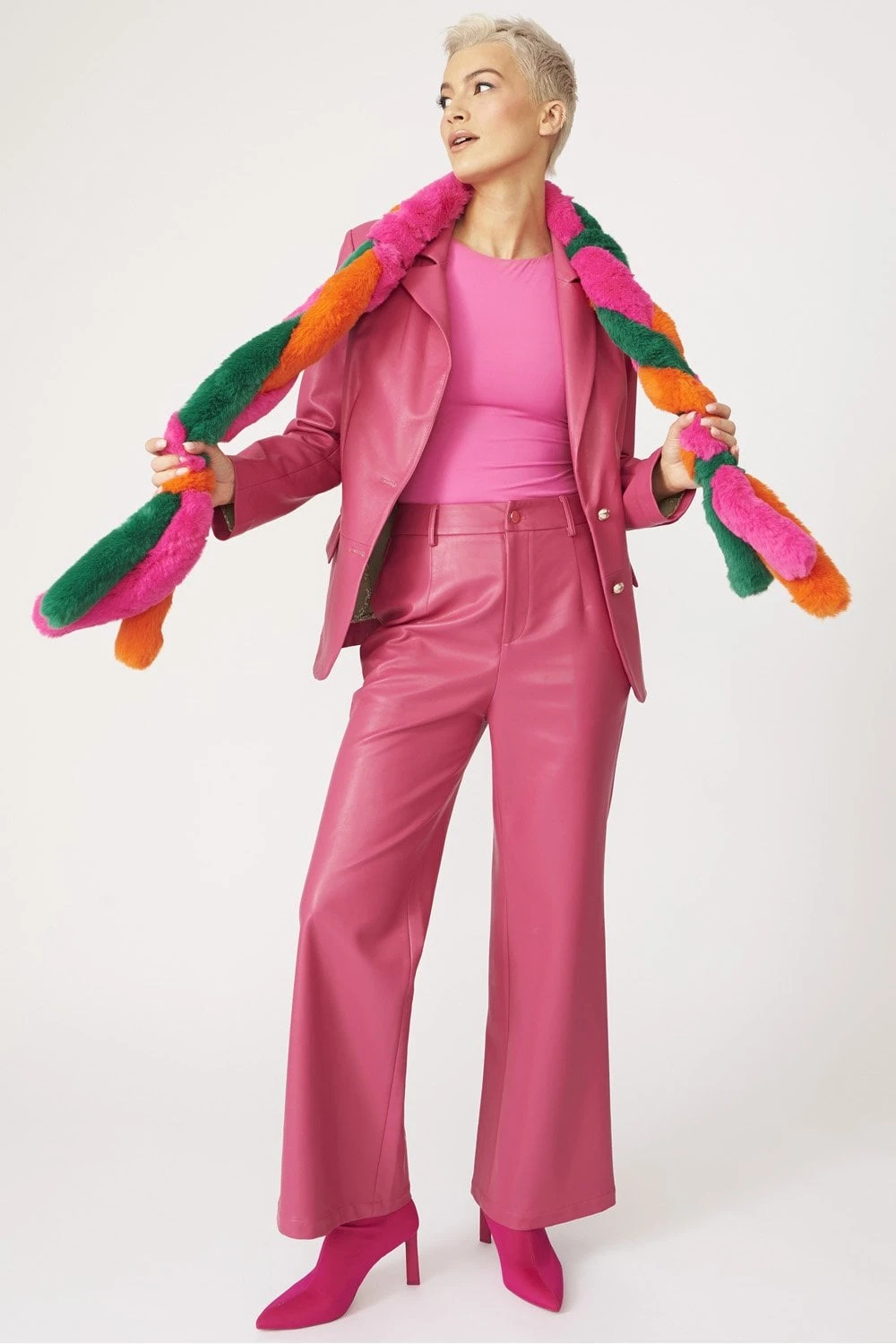 We LOVE this faux fur scarf. It’s such a cute addition to your outfit to keep the summer breeze off your shoulders The scarf features a small slit allowing you to fasten it snuggly around your neck.