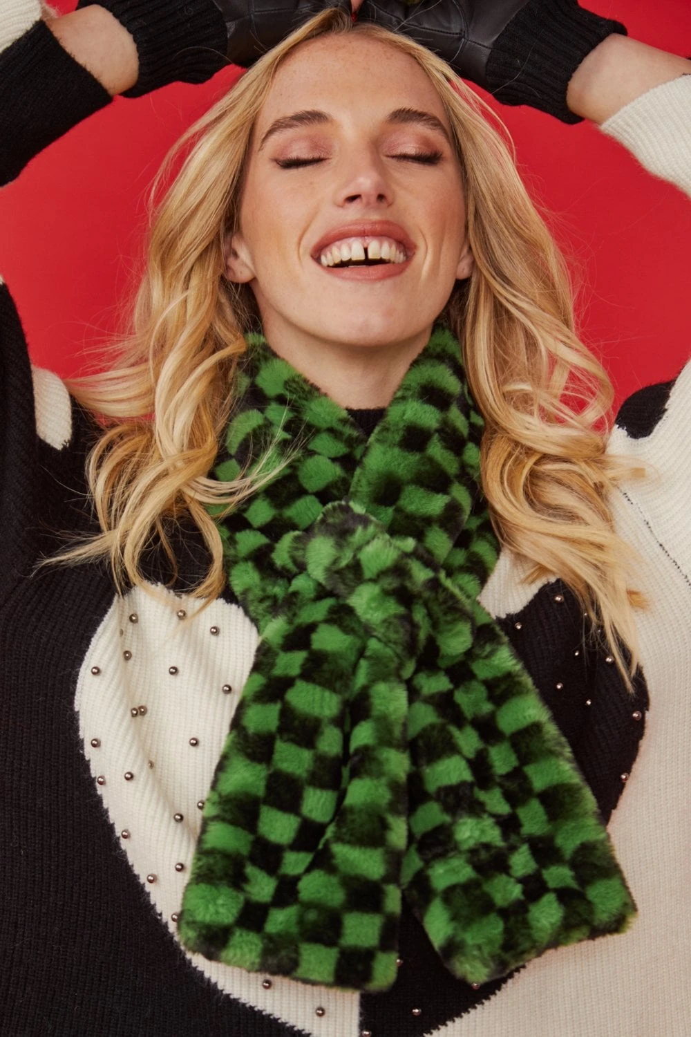 This luxury two toned faux fur check scarf, is intricately crafted from the finest materials to produce a high-end faux fur scarf in on-trend checkered print.