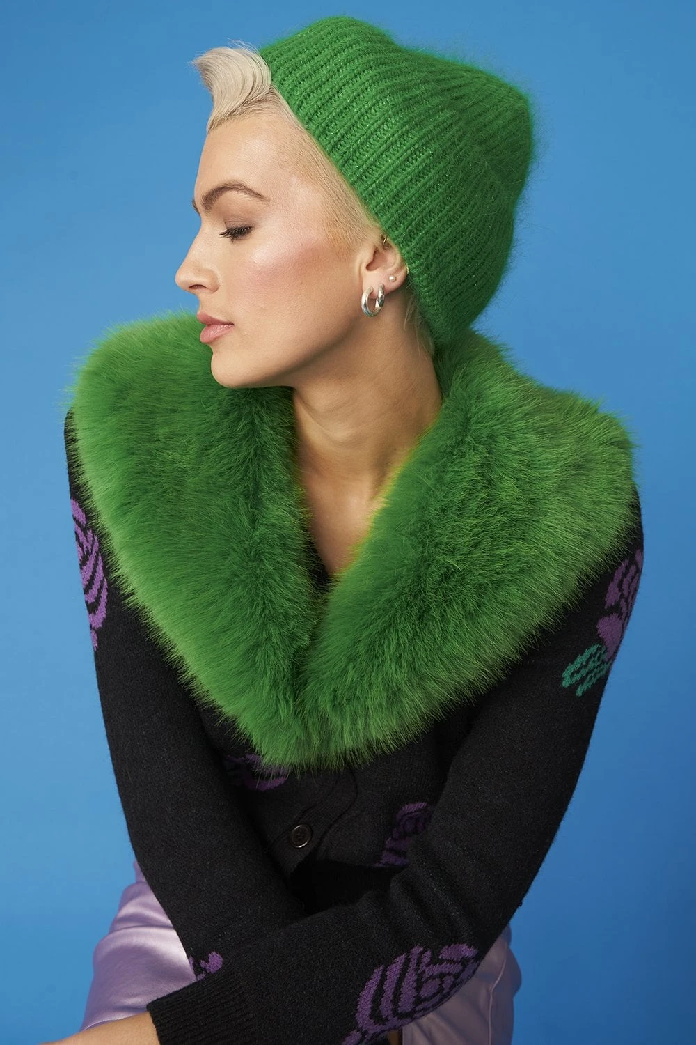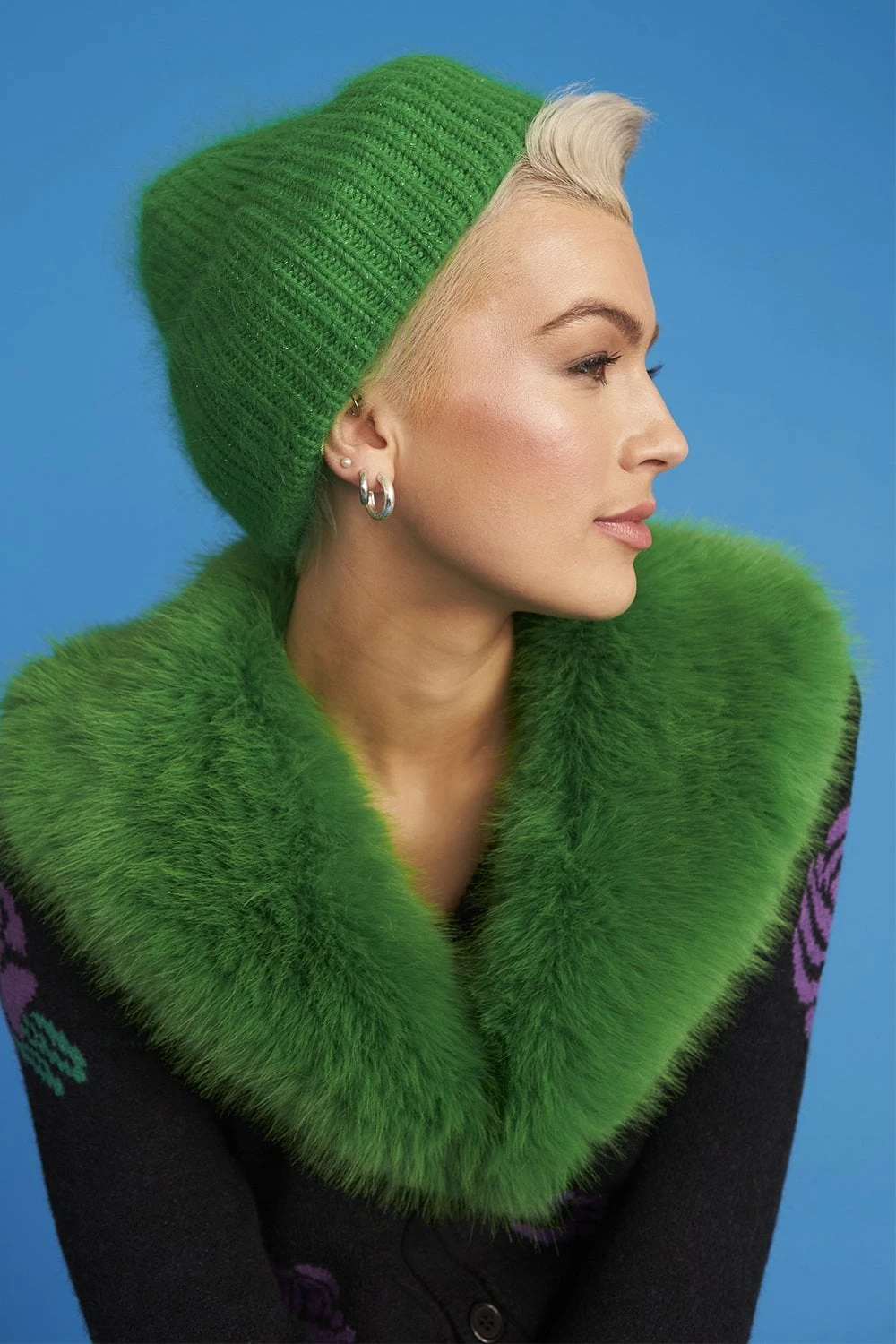 JAYLEY Green Cashmere Blend Gigi Beanie Hat