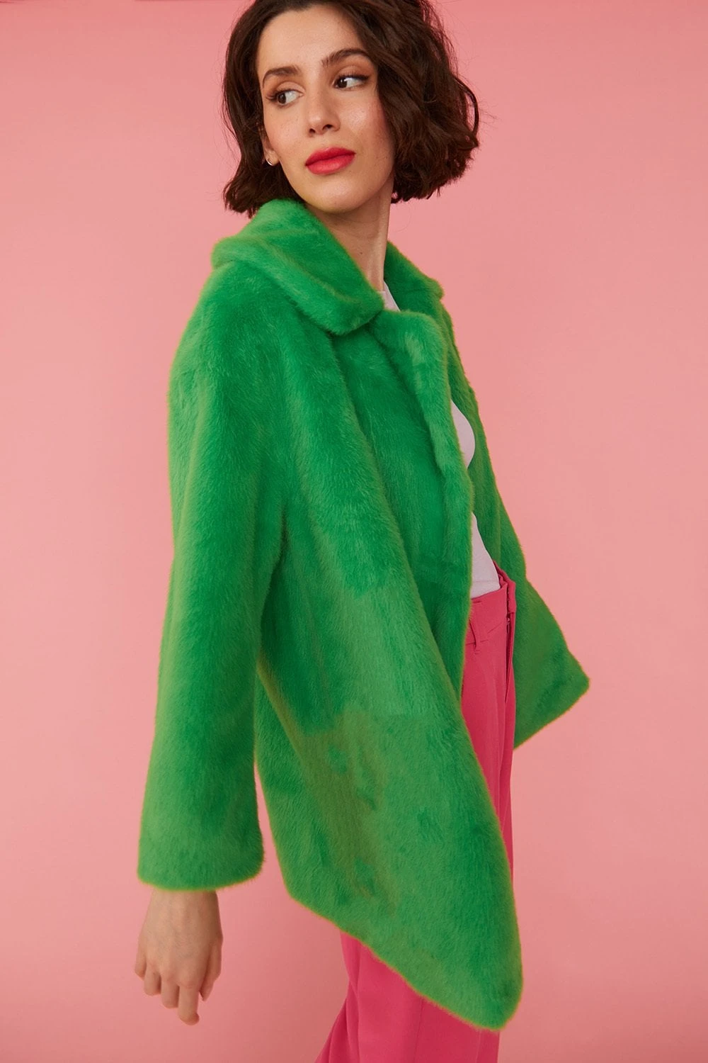 Cut to a flattering mid-length this faux fur coat is a timeless piece that’s associated with glamour and elegance. Featuring side pockets, full lining and peaked lapels, this coat is made to be worn open, and to accentuate your below dress or pair or trousers.