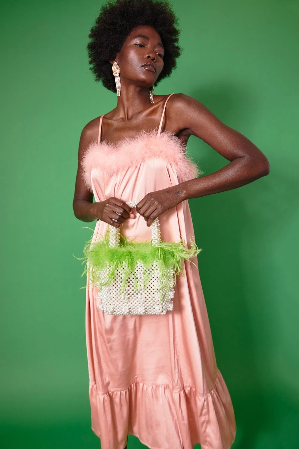Pearl and Feather Trim Bag
