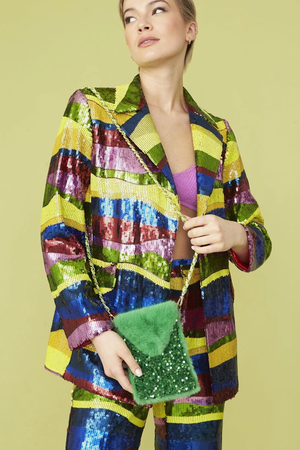 JAYLEY Green Sequin And Faux Fur Phone Holder