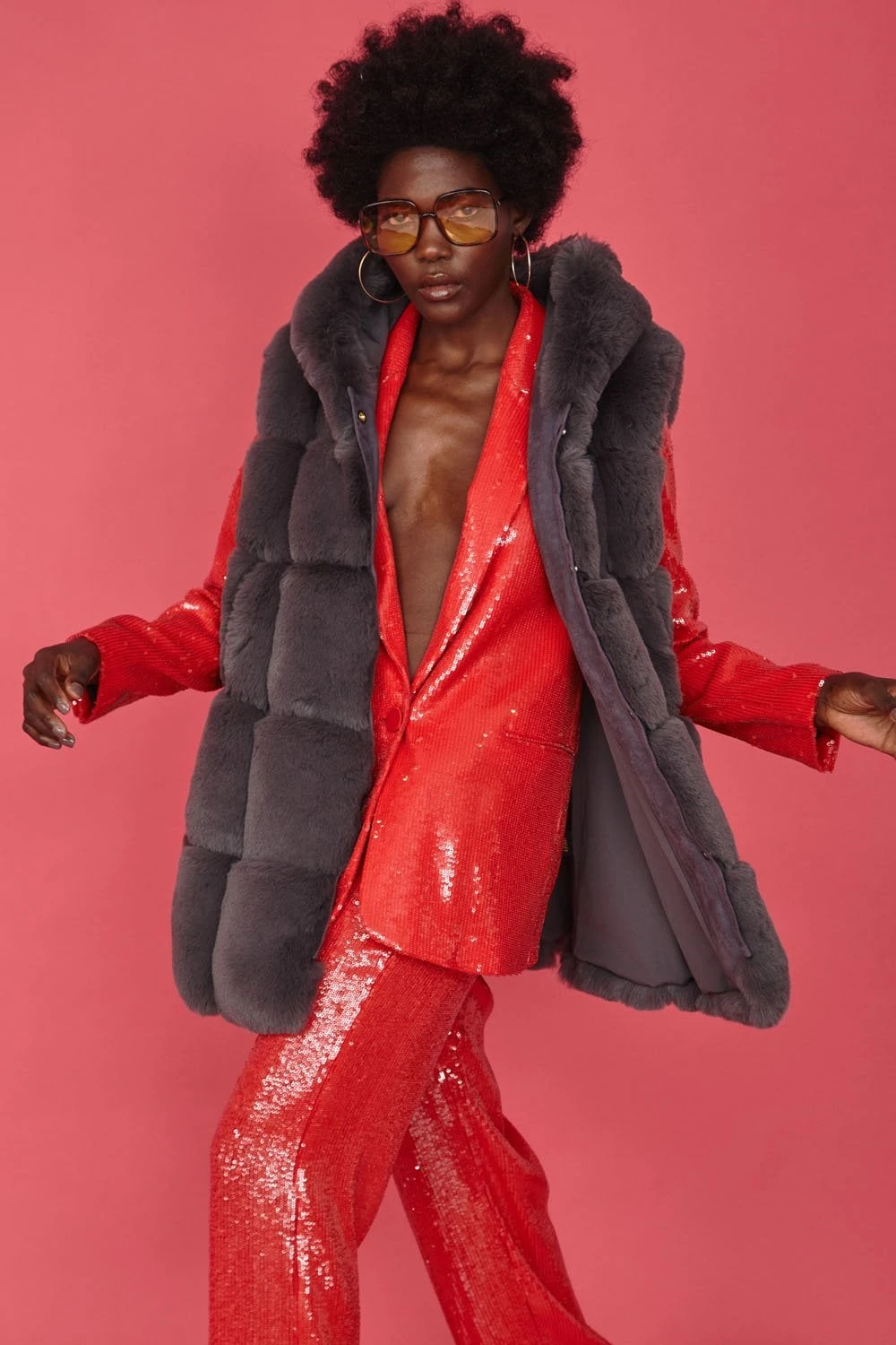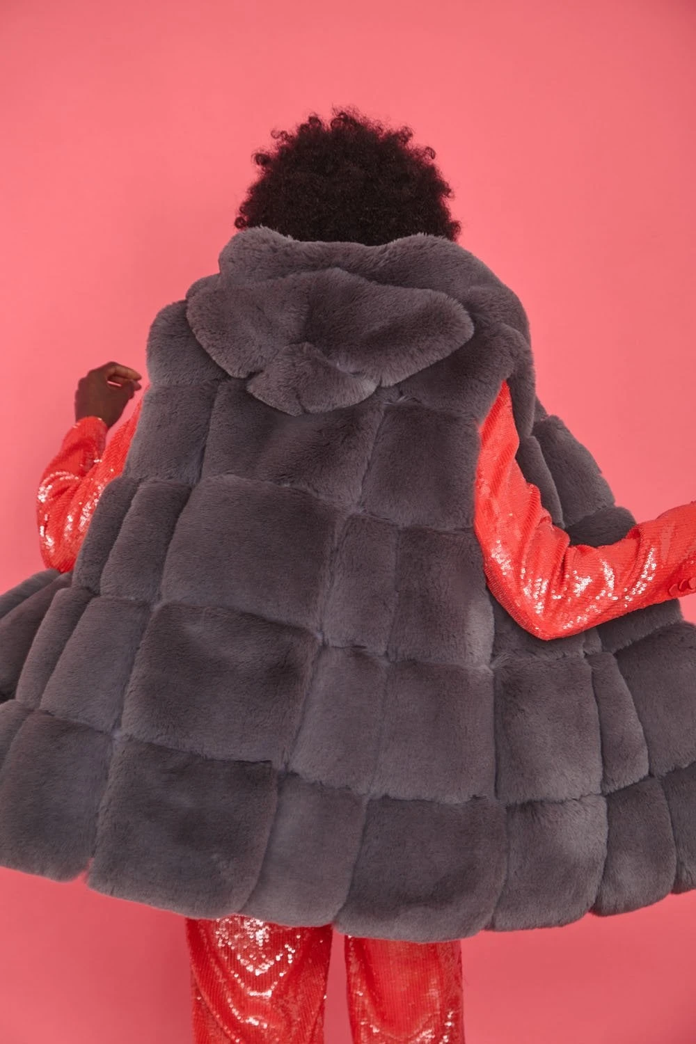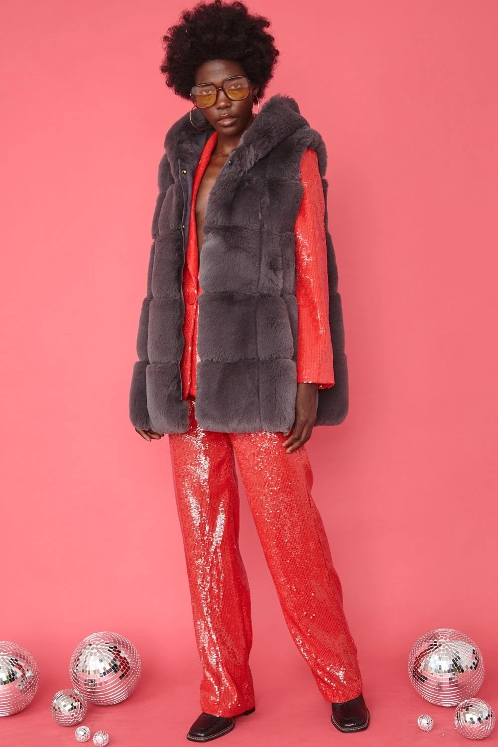 The ideal layering piece, this long faux fur gilet with hood, pockets and snap fasteners is a versatile piece, which has a silhouette-lengthening effect for a chic appeal. Made from the finish of faux fur materials this gilet will quickly become a wardrobe favourite; and with a wide variety of colours, there’s one for every outfit.