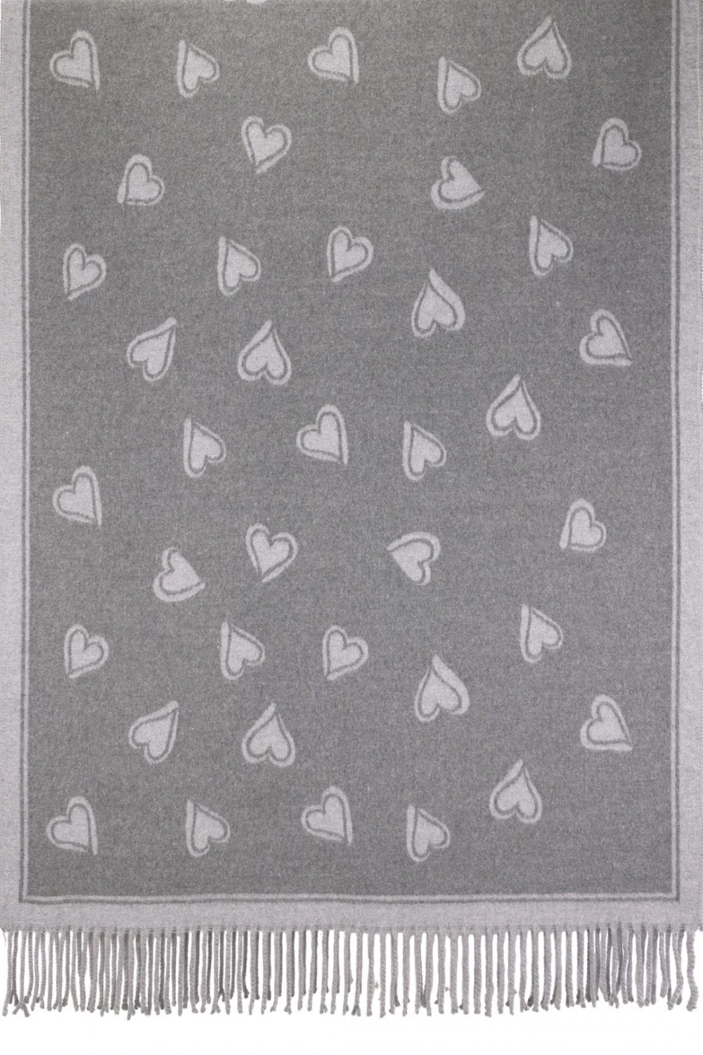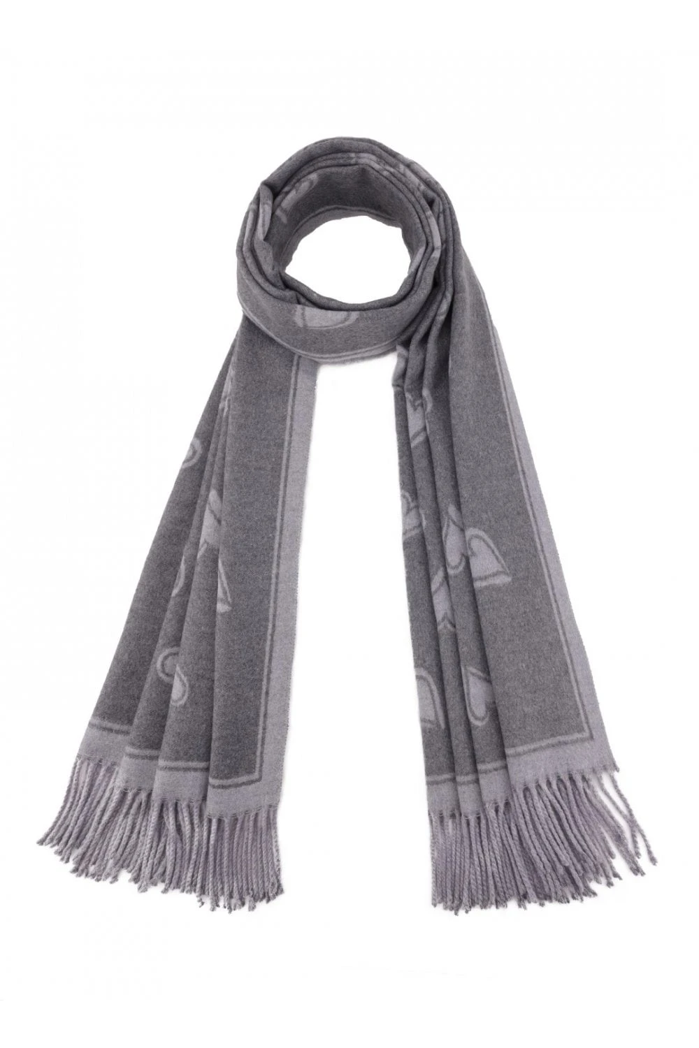 A must-have for the winter season, this cashmere blend scarf with a heart design will become a wardrobe staple. In grey tones with a tasseled fringe, this will lend a touch of luxury to any outfit.