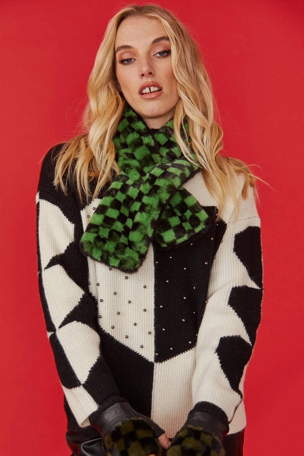 This season’s checkered print is everywhere! Why not add a reversible checkered print and black scarf to your Autumn Wardrobe? This scarf features a small slit allowing you to secure snuggly around your neck.