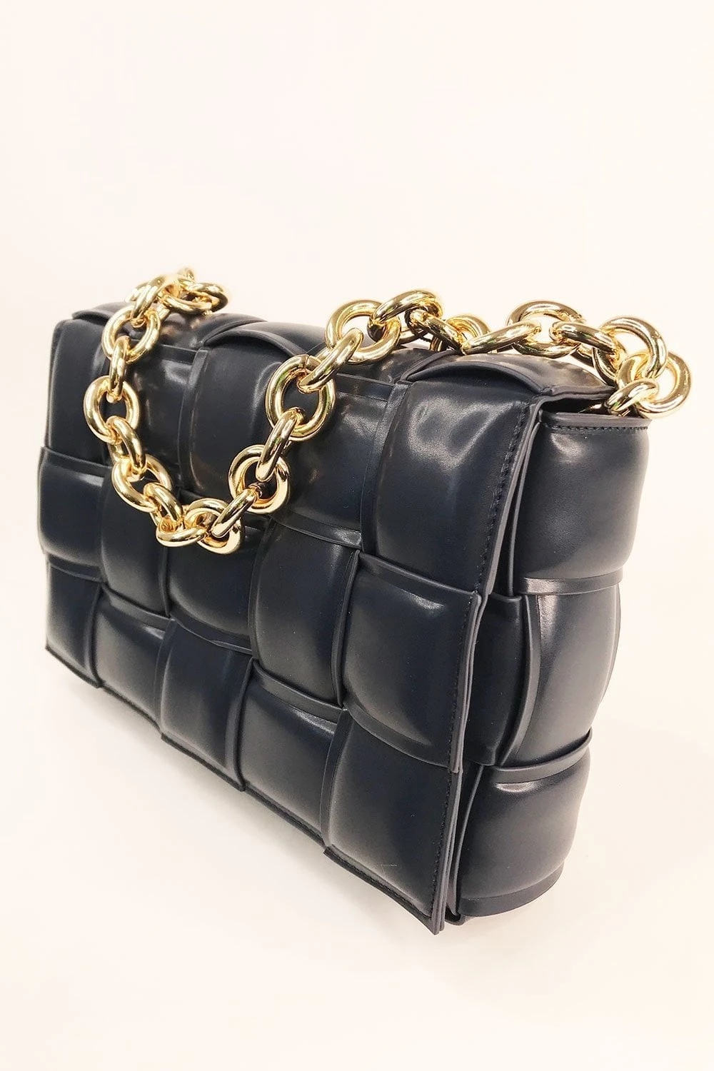 JAYLEY Navy Eco Leather Cross Woven Clutch Bag With Gold Chain