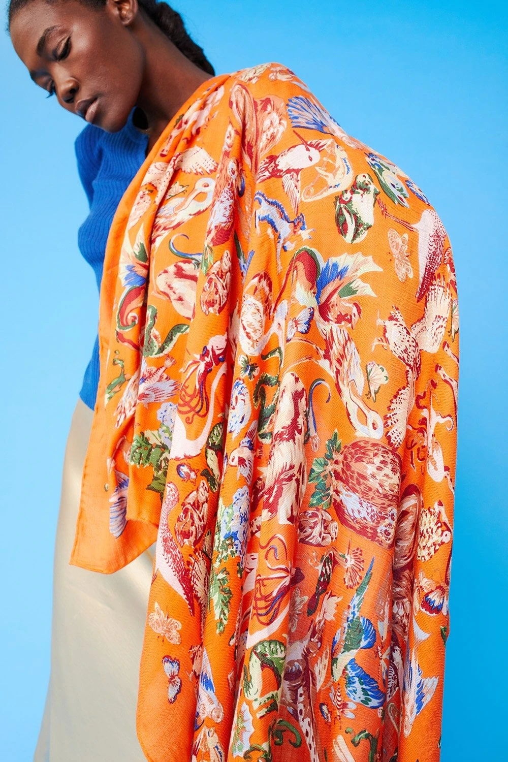 Indulgently soft this 100% cashmere hand-painted jungle print scarf is perfect for throwing over your shoulder or tying around your neck in a gentle knot. This scarf is sure to bring a pop of colour to your look.