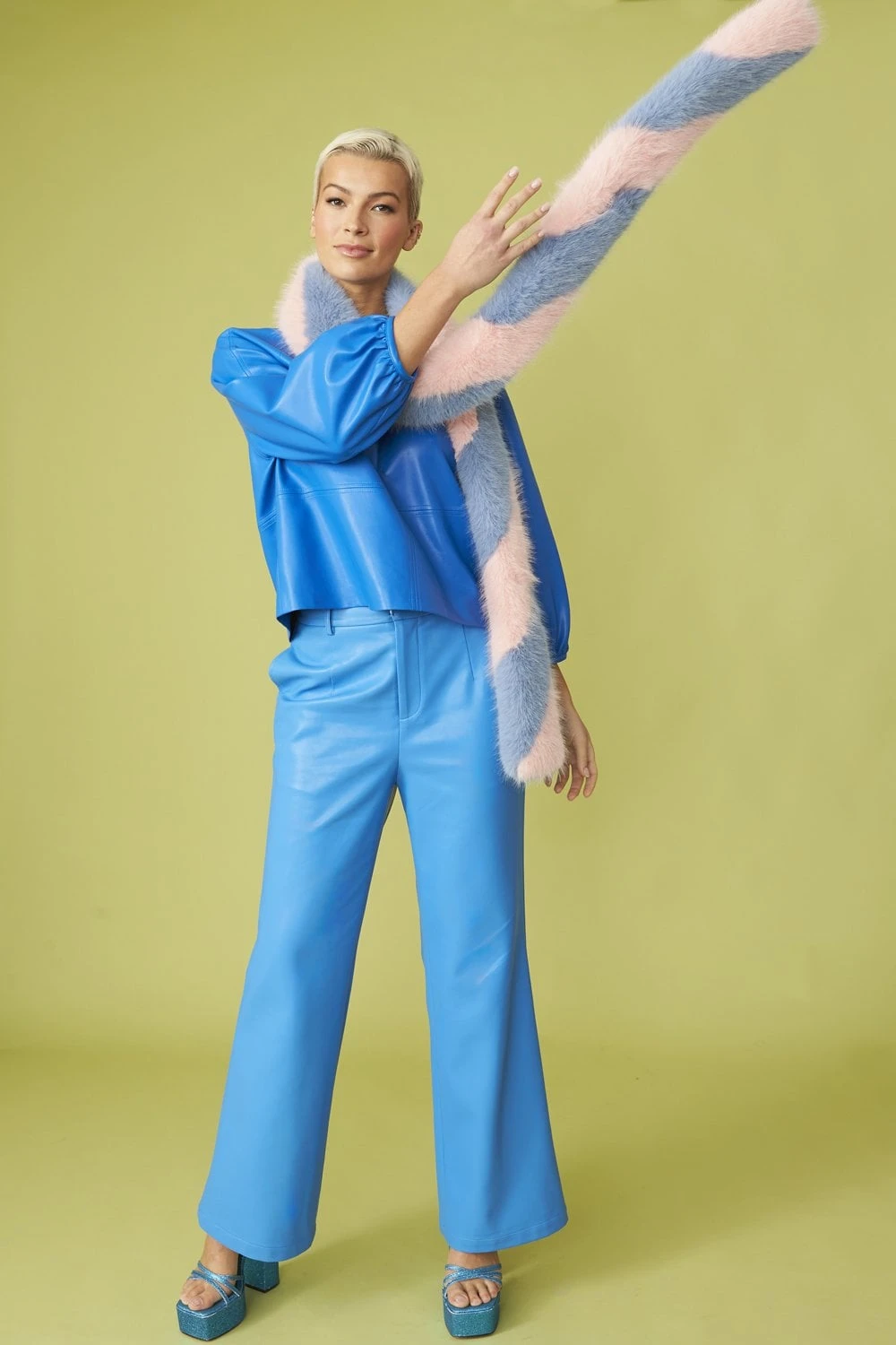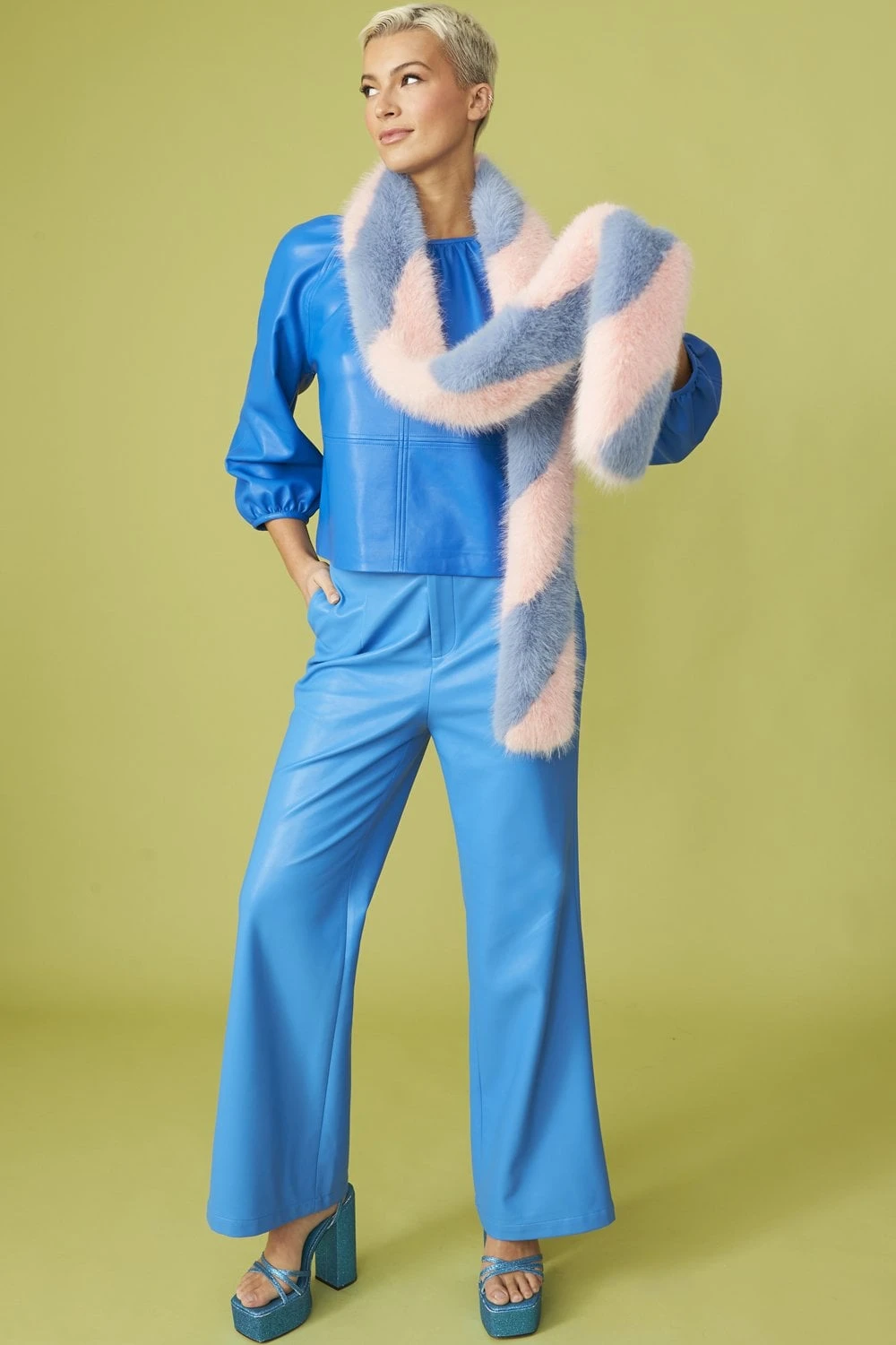 Snuggle up in luxury in this faux fur scarf. Perfect for adding a touch of colour to your look. This scarf can be fastened snuggly around your neck using the slit at the bottom of the scarf.