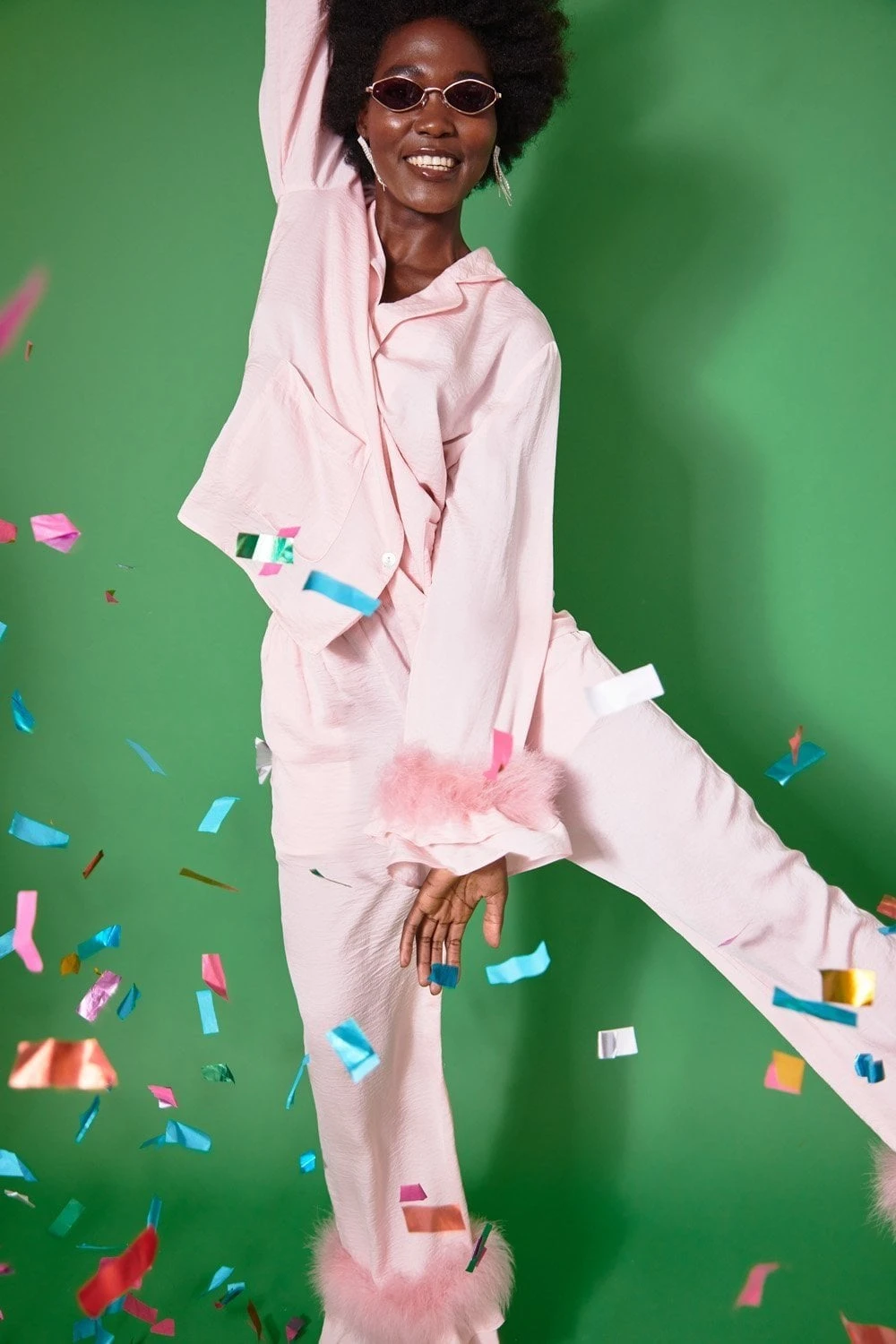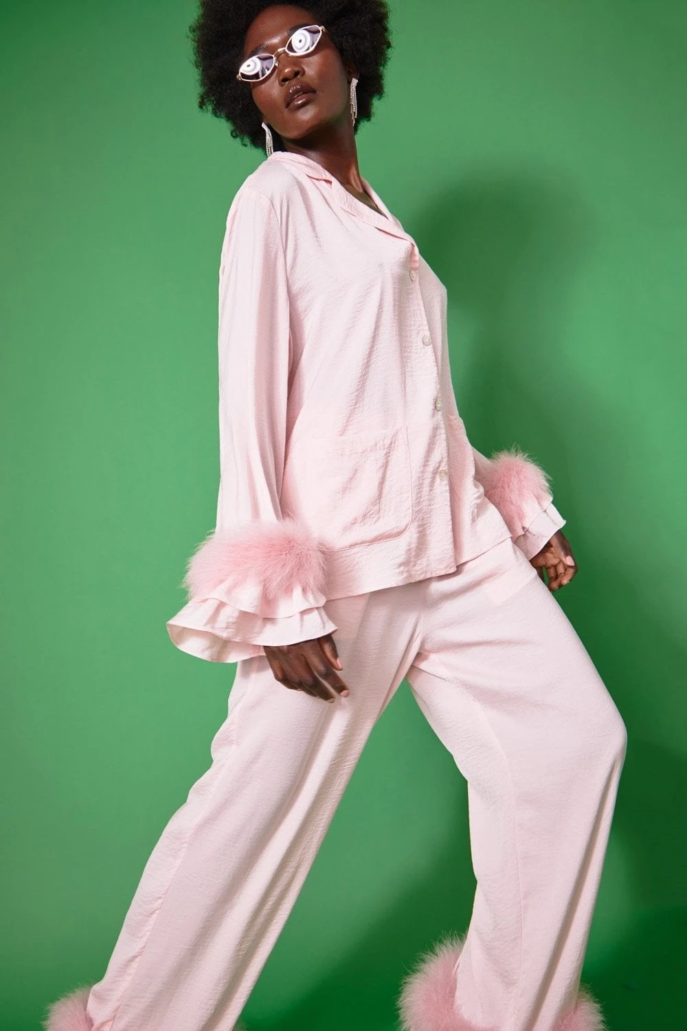 From day to night in luxury, our gorgeous silk blend loungewear is just what the end of lockdown calls for. Paired with heels or slippers this set is so versatile you’ll never want to take it off. Featuring ostrich feather and ruffle hem, front pockets and classic style collar.