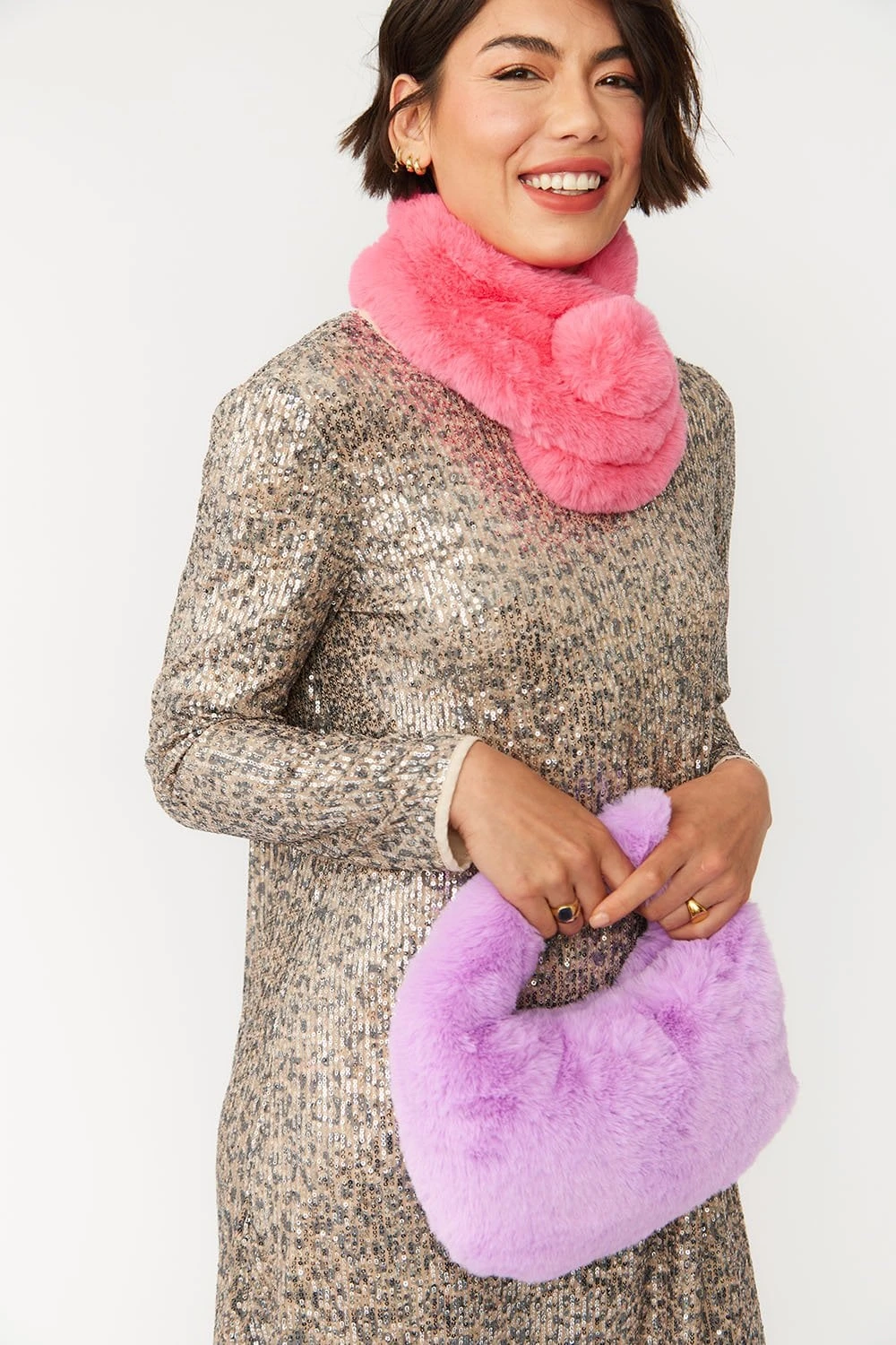 Working equally well as a scarf or collar, this faux fur scarf will add instant glamour to your outfit! It will also keep the summer breeze off your shoulders!