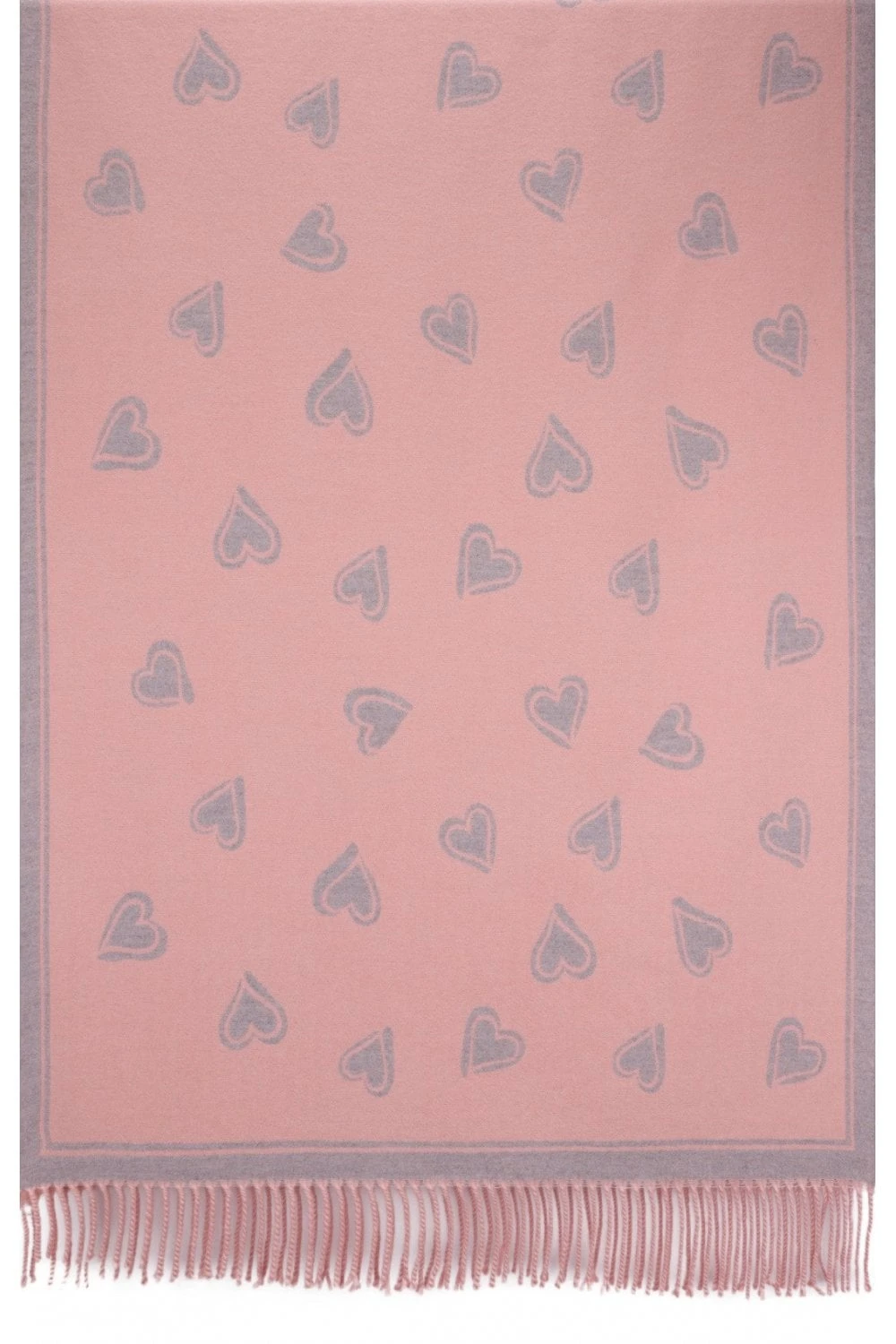 JAYLEY Pink Love Hearts Tassel Reversible Cashmere Blend Scarf