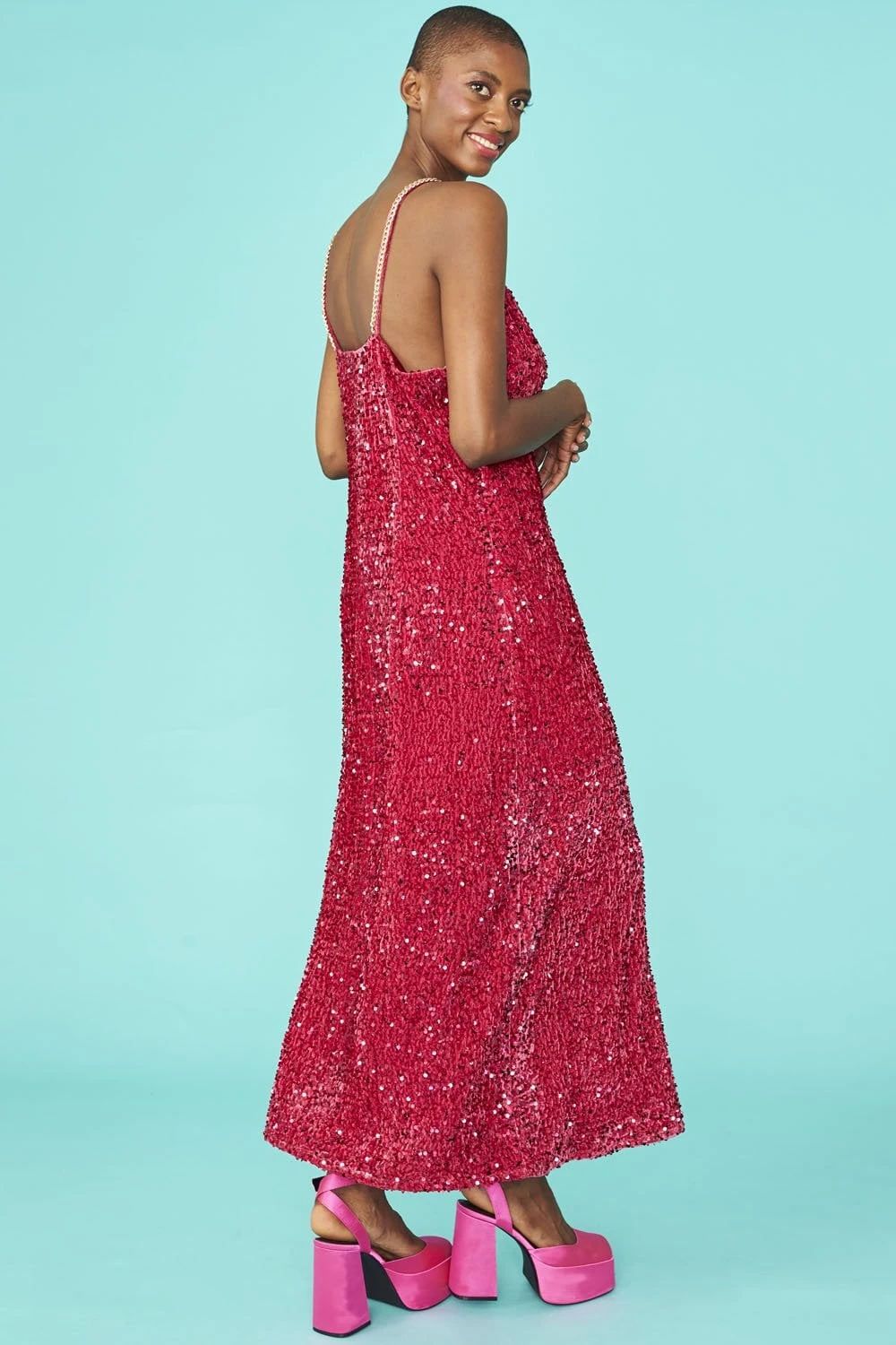 Party your way through life in this show-stopping maxi dress. With adjustable straps and flattering a-line swing style.