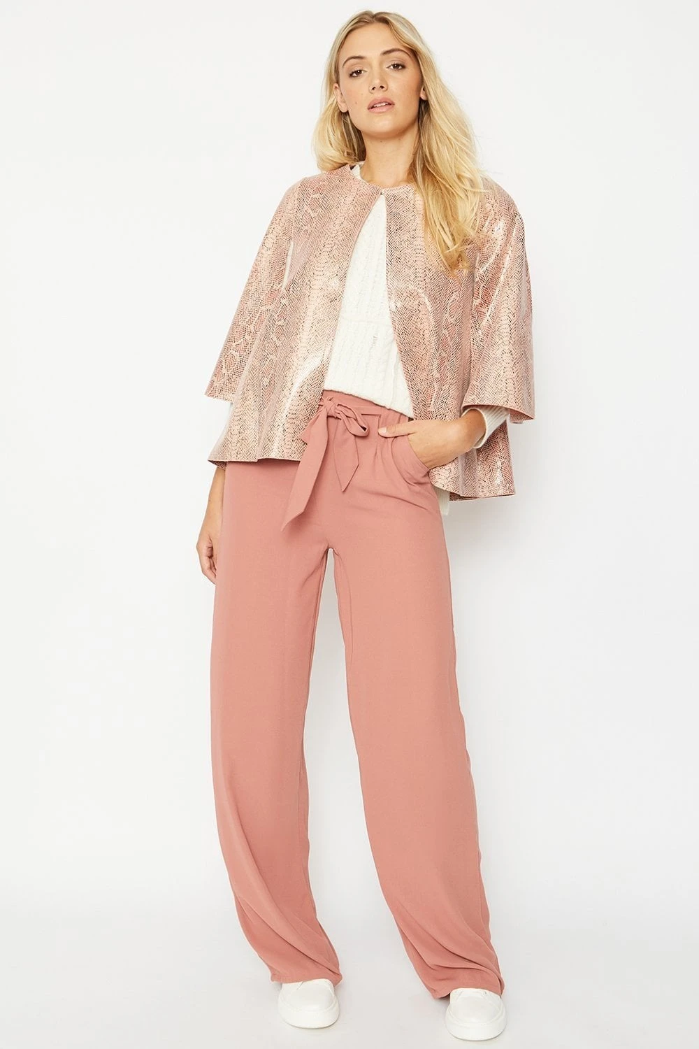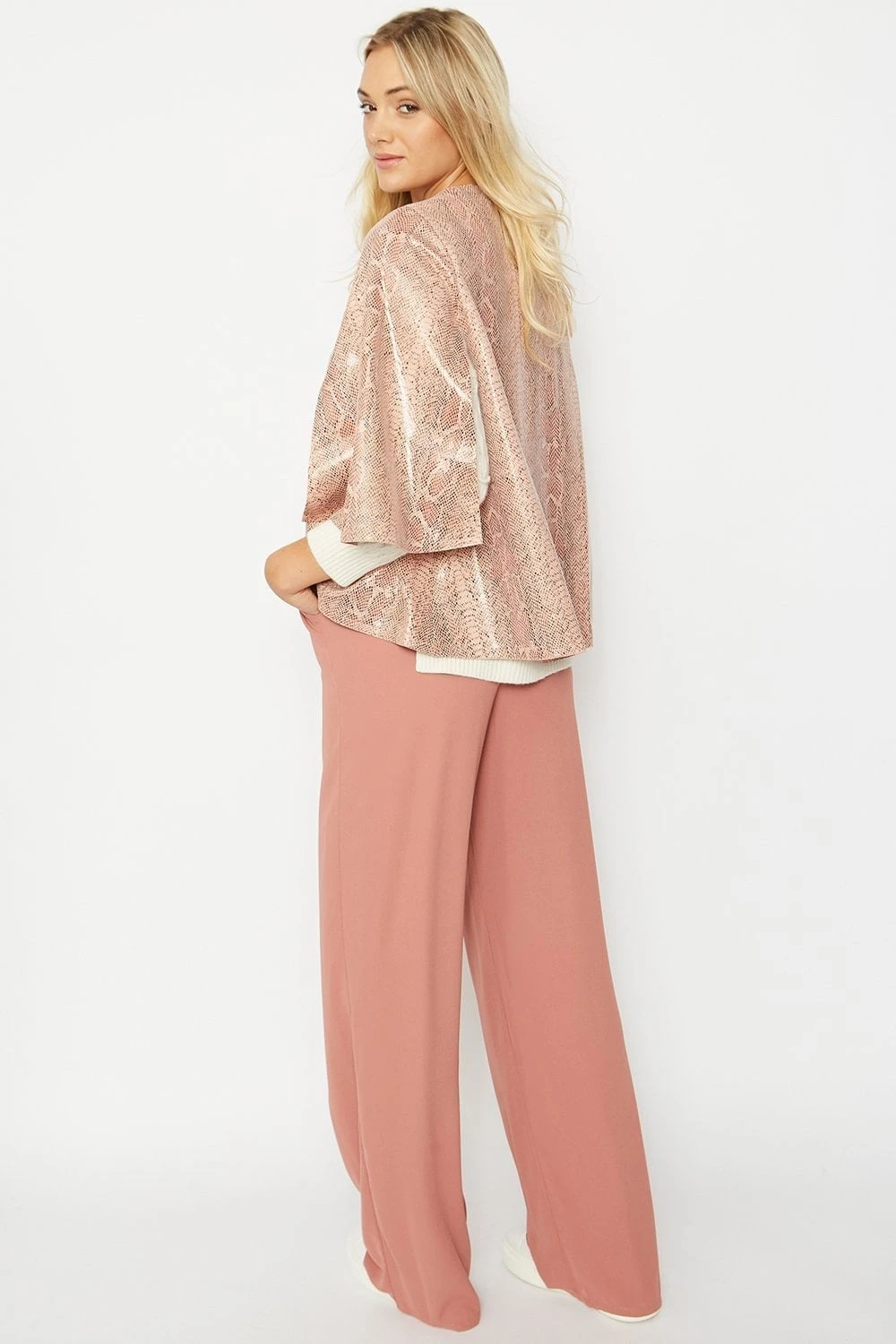 A real statement outerwear piece made from the finest of faux suede materials with subtle snake print. This cape offers a flattering fit with hook and eye front fastening.