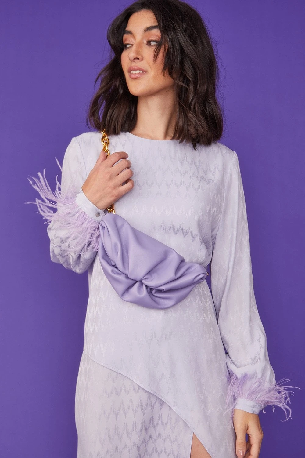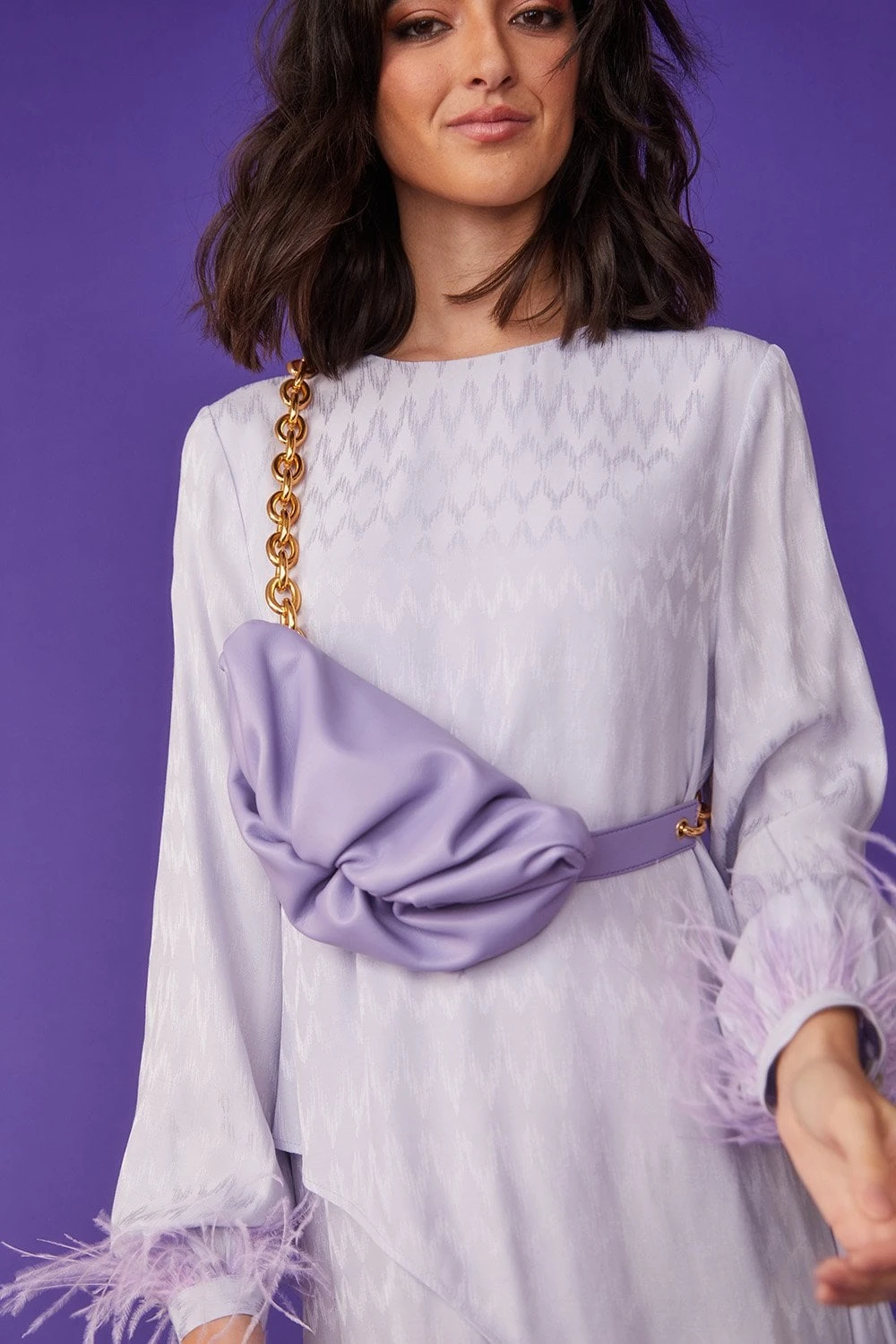 Step out in style with this cute clutch bag with over the shoulder or cross body chain. Featuring magnetic closing and a ruched leather finish.