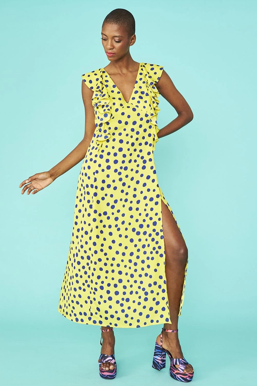 JAYLEY Rayon Polka Dot Ruffled Mid Parma Dress