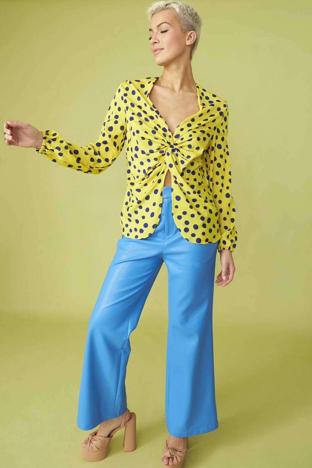 It’s super easy to make a style statement in this spectacular polka dot print blouse! We’ve added a figure-flattering structure with long sleeves, V neckline and knotted detailing! This sophisticated blouse is definitely a wardrobe must-have!