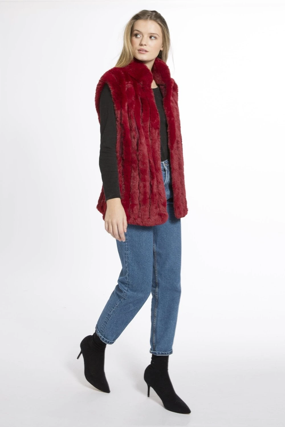 JAYLEY Red Faux Fur Gilet