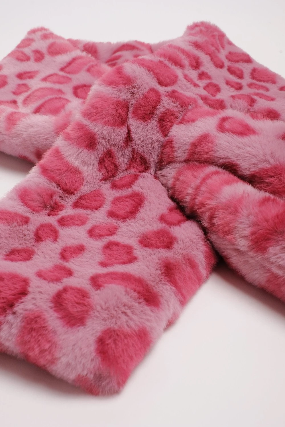JAYLEY Red Leopard Print Faux Fur Scarf