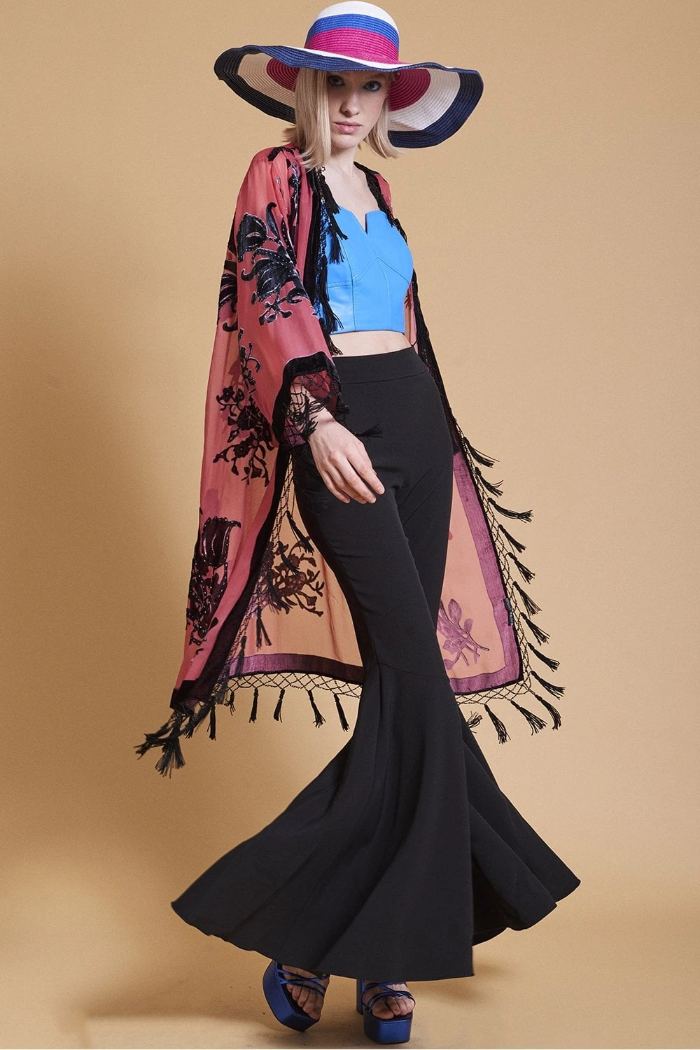 Jayley Luxury Long Length Devore Kimono Style Jacket