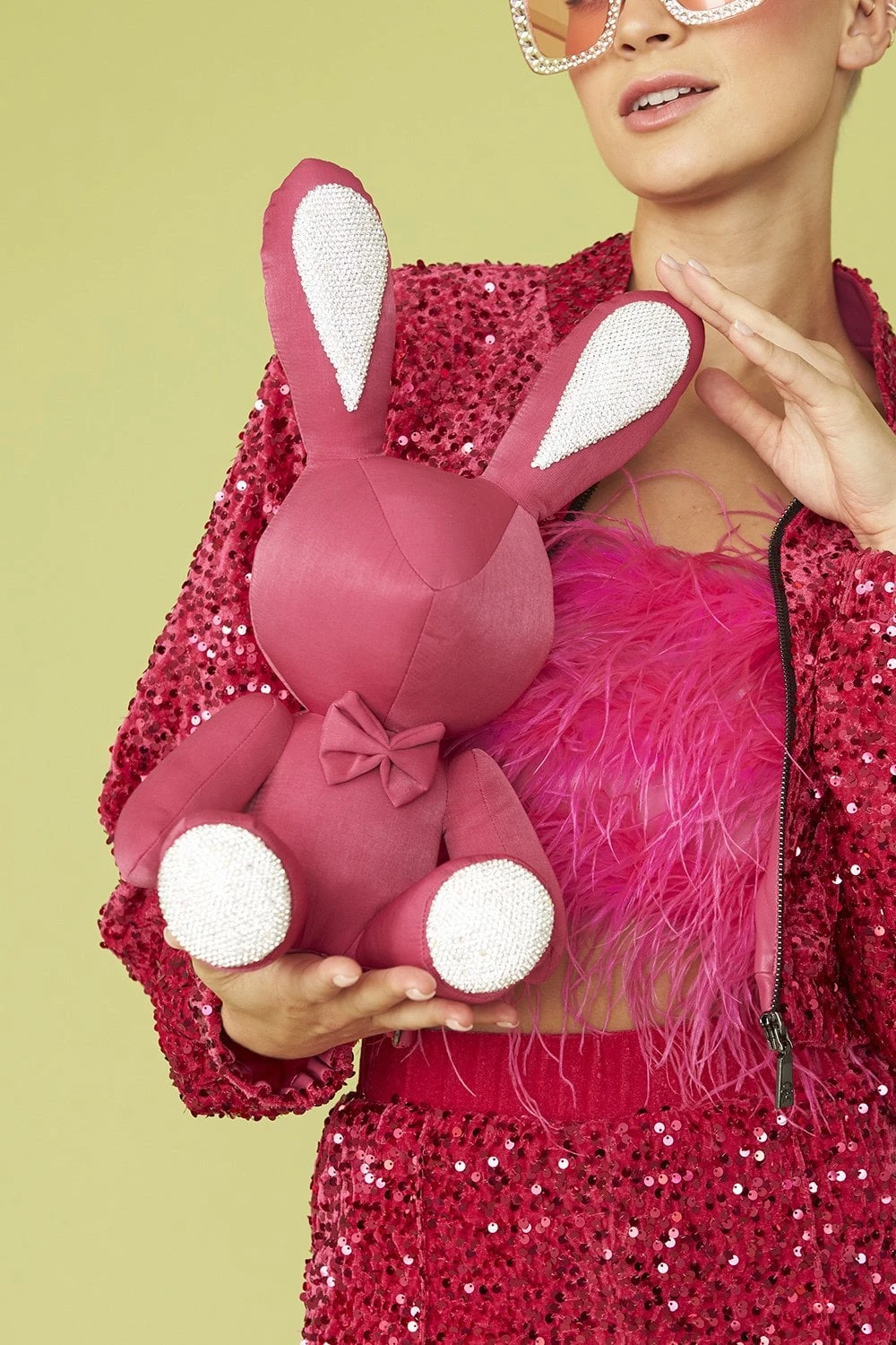 Please note that these rabbits are relatively heavy and feature hard rhinestones on the ears and feet.