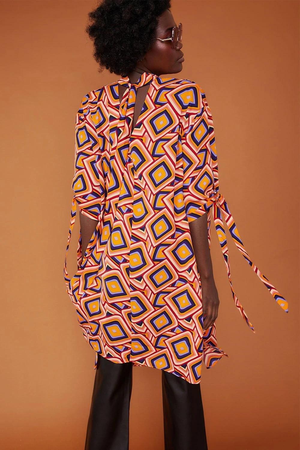 The latest addition to our Autumnal geometric collection is this gorgeous oversized sleeveless shirt dress with high neck and a-line fit.