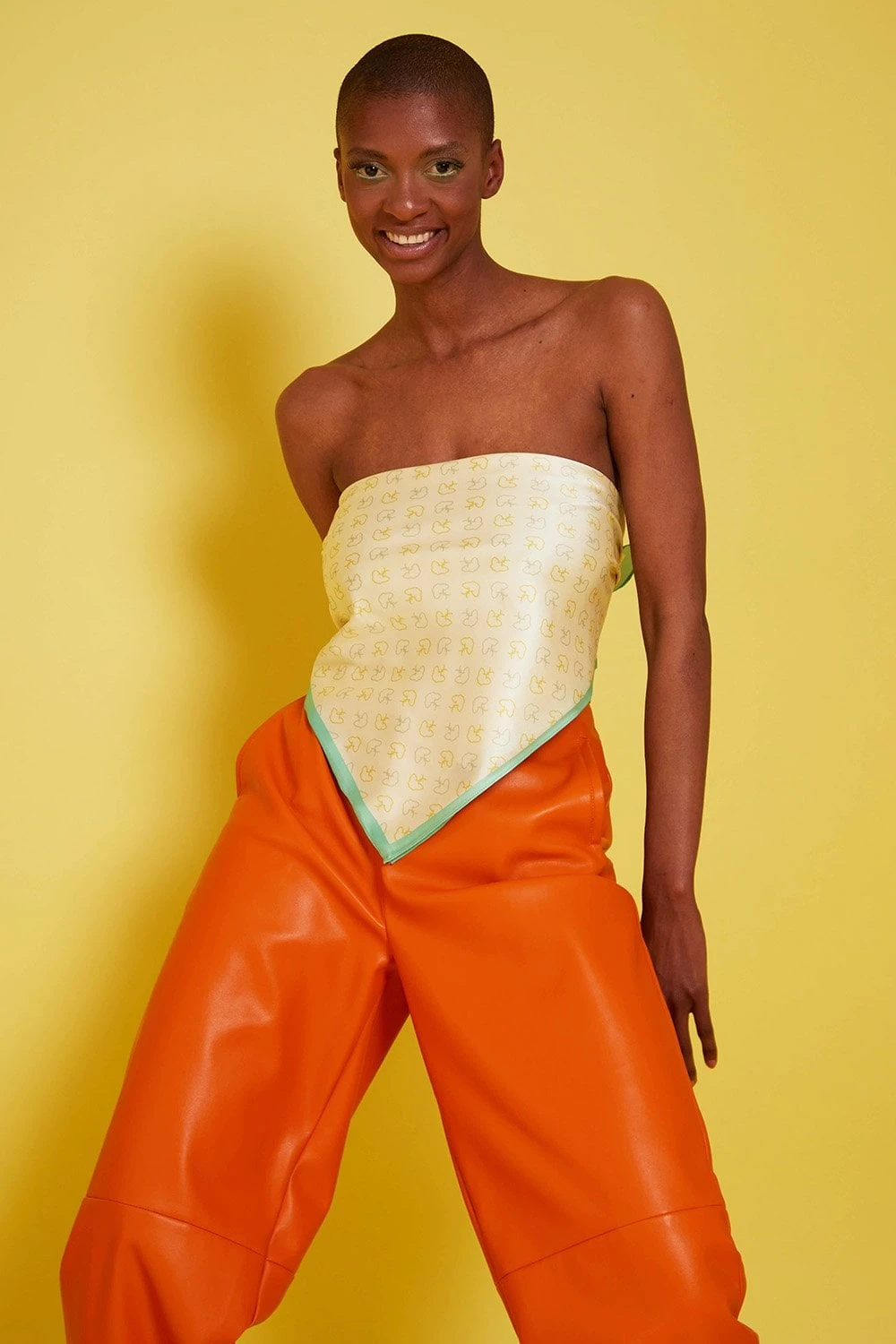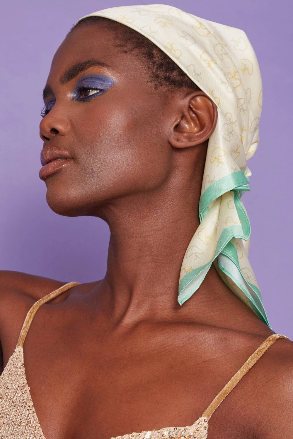The silk scarf trend will never go out of fashion, this silk scarf features a really bold beautiful abstract print. The size of this scarf is perfect for hair wraps, styling as a top, or wearing around your neck. The possibilities are endless.