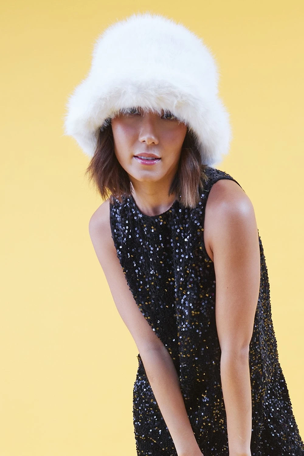Get ready to make a statement in this unreal hat. Features a pure white faux fur bucket hat, we’re obsessed. Just add to your outfit of the day for a look that will get you noticed. Available in many colours!