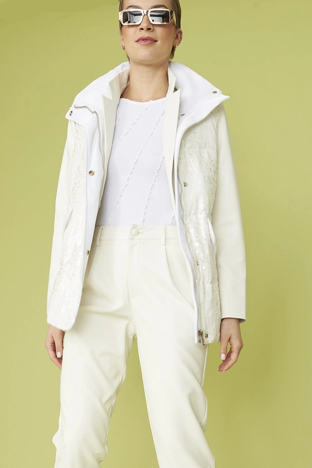 Sequin ribbed texture will elevate all your day-to-night looks! Cropped length with zip and press stud fastening. We just love how this instantly adds sparkle to your outfit!