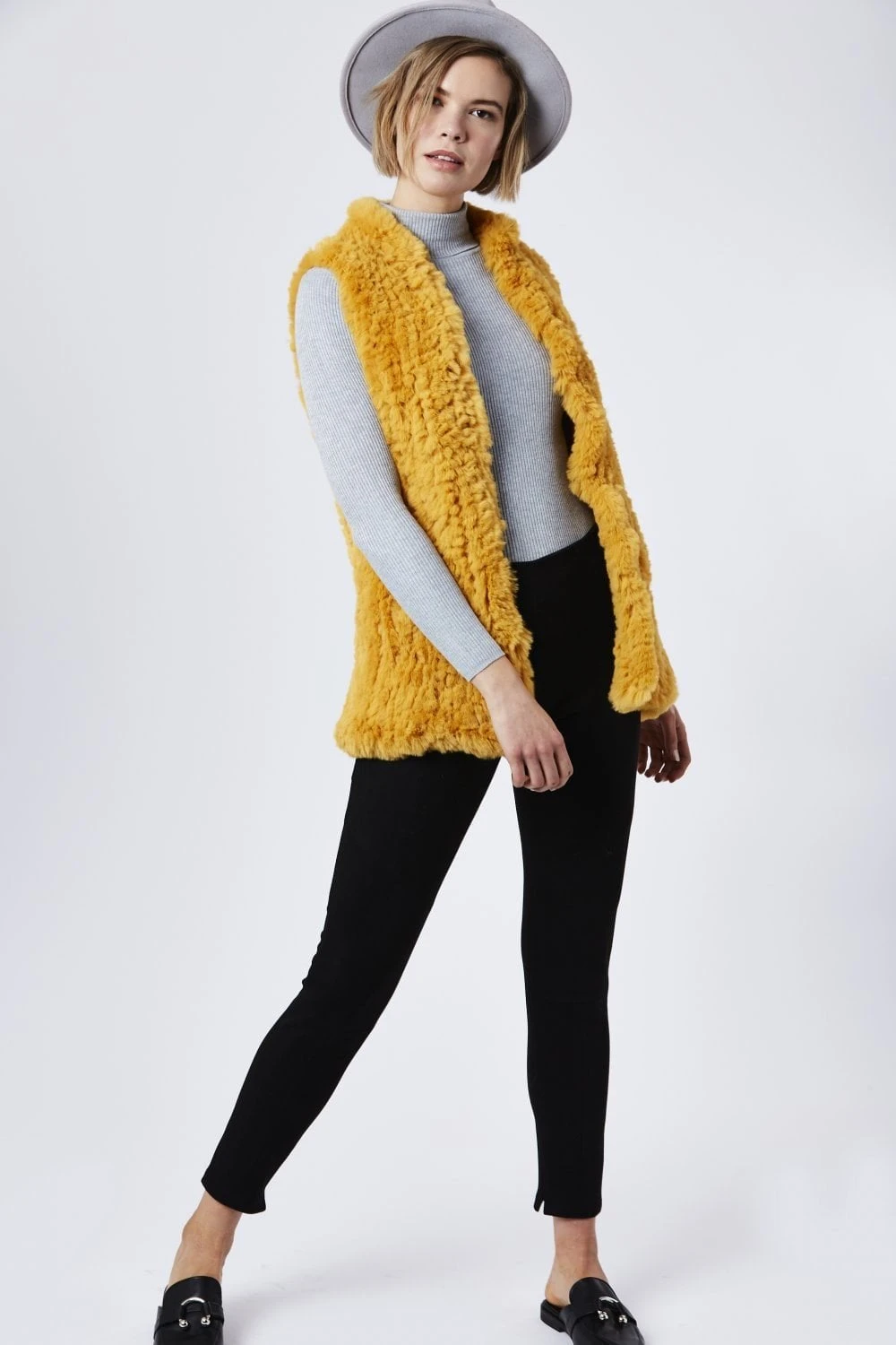 JAYLEY Yellow Hand Knitted Faux Fur Gilet