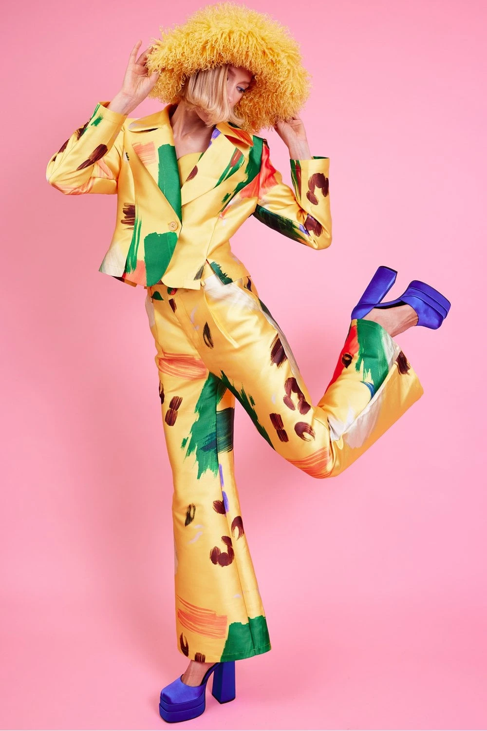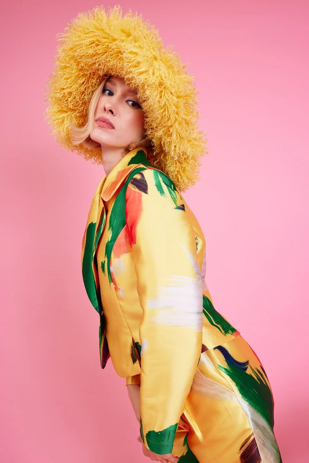 JAYLEY Yellow Oversized Bamboo Fur Hat