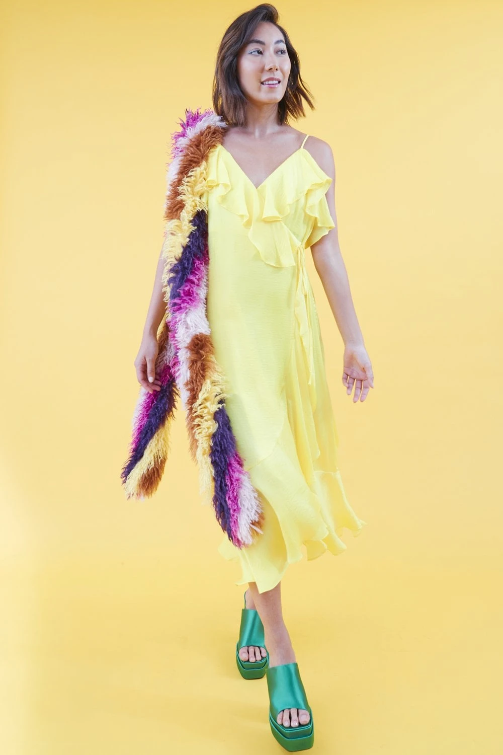 JAYLEY Yellow Silk Blend Maxi Ruffle Dress